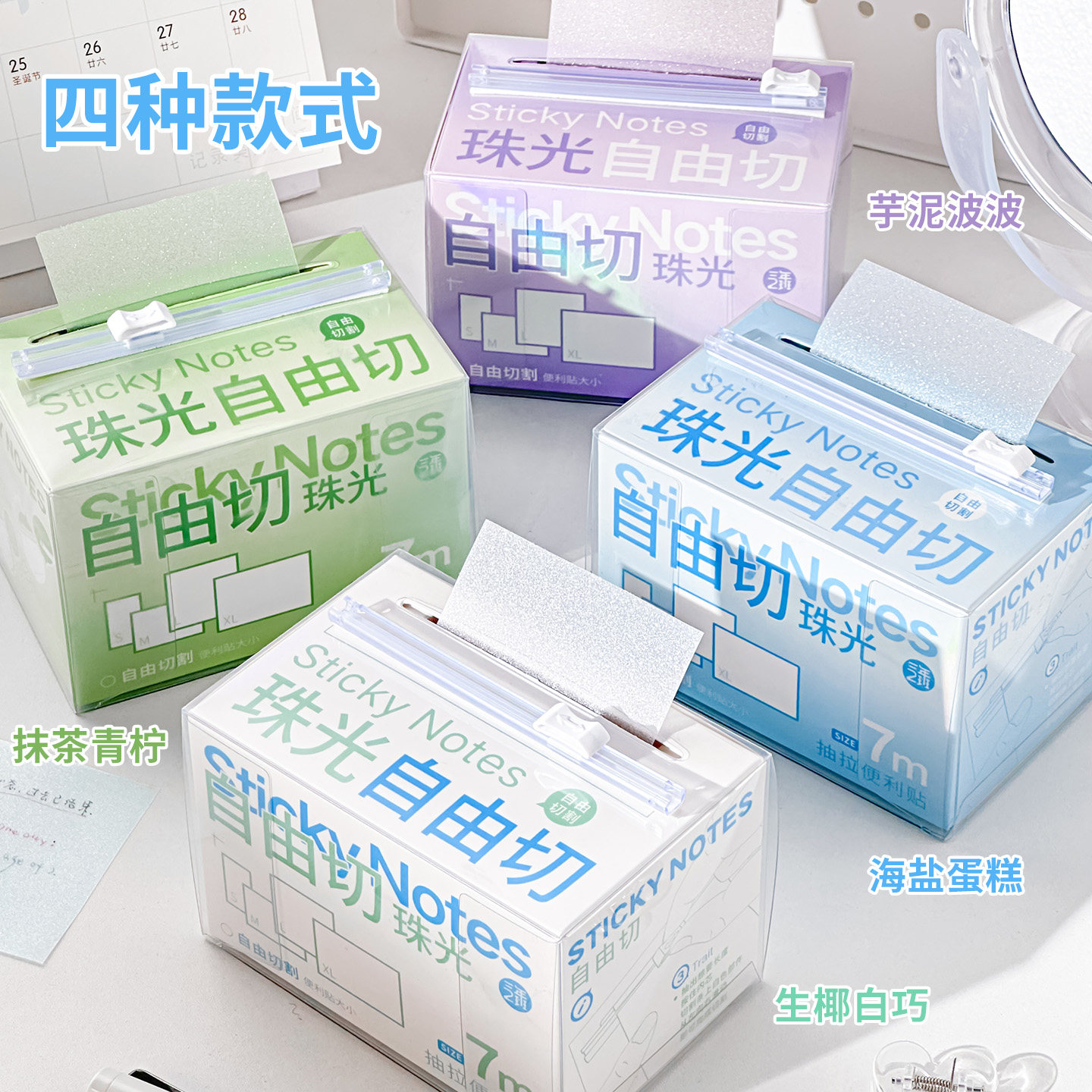 可抽拉式便利贴珠光爆闪透明材质学生用考试记事贴纸高颜值彩