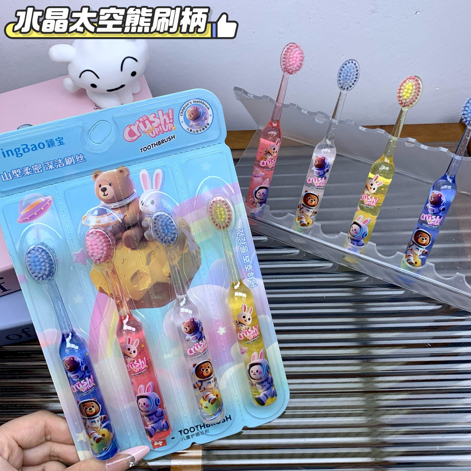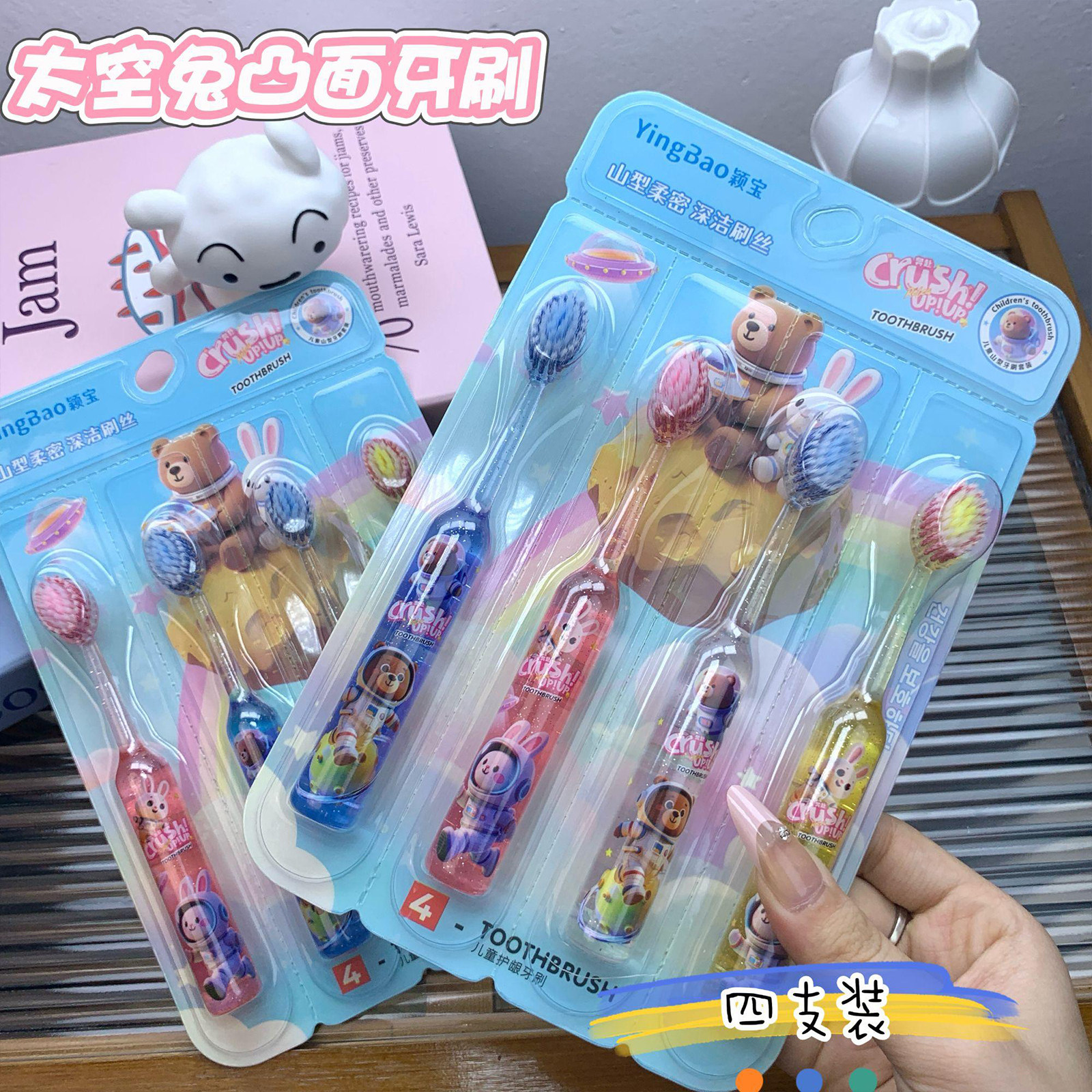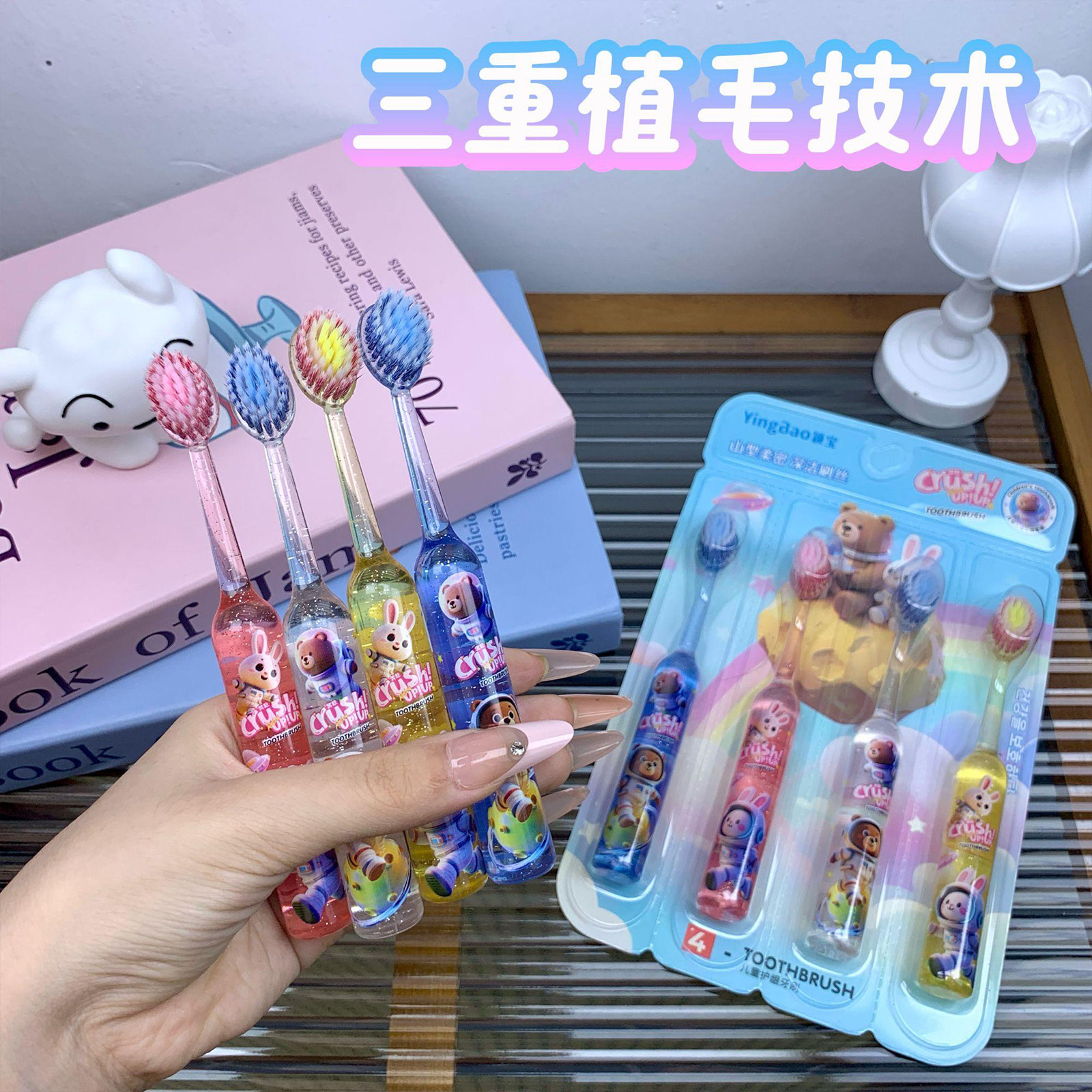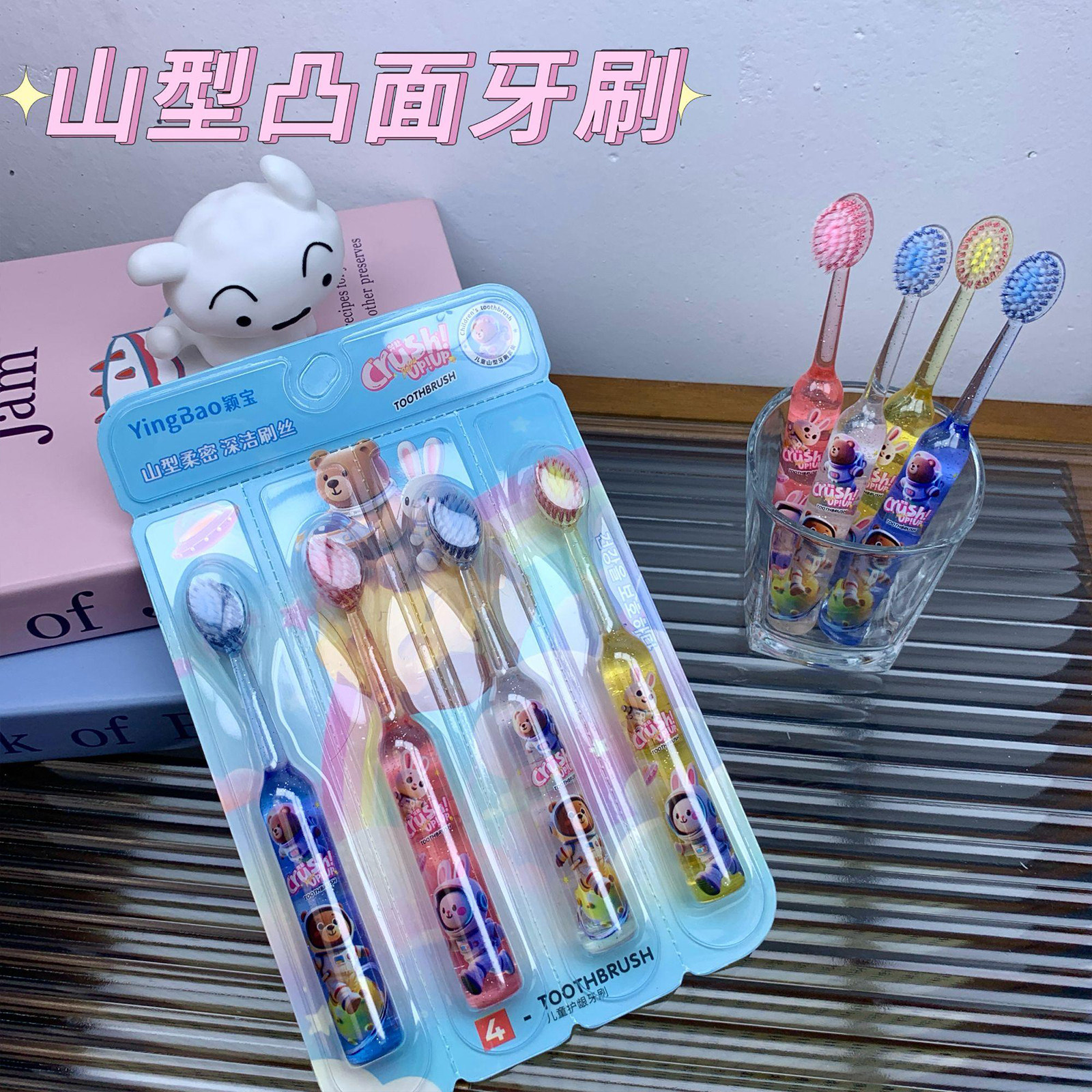 卡通儿童罗马柱山型凸面水晶牙刷3-6-12岁洁齿深层清洁软毛折叠