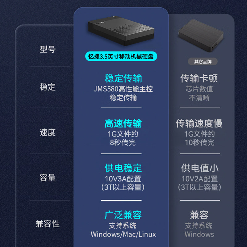 忆捷4T移动硬盘3T外置大容量高速10T传输6t存储外接桌面机械硬盘