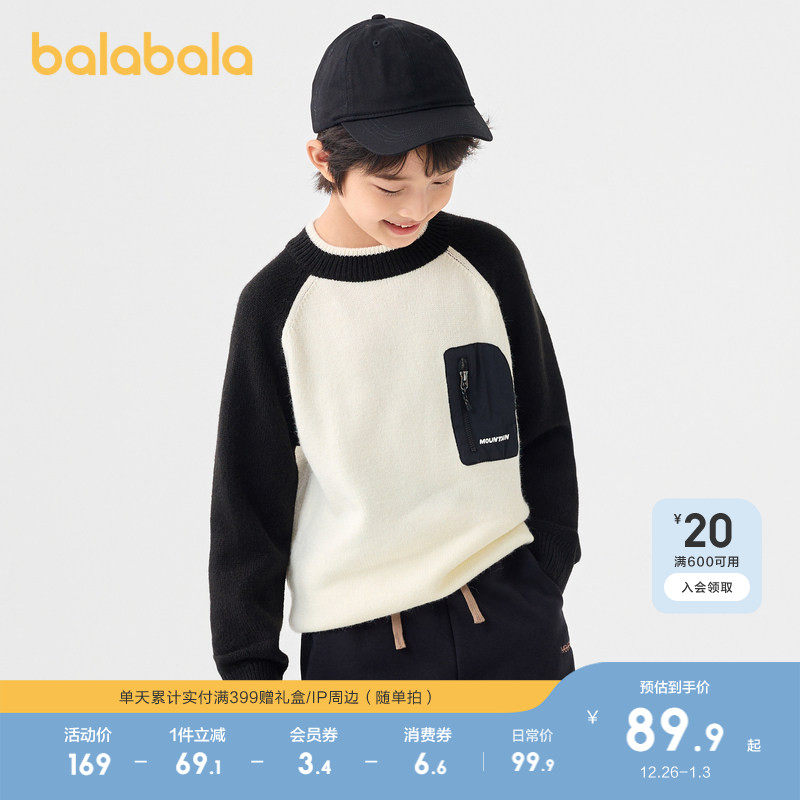 巴拉巴拉童装儿童毛衣男童秋冬装撞色套头毛衫潮大童休闲百搭上衣