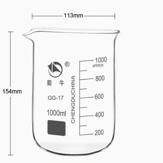 蜀牛玻璃烧杯加厚耐高温低型250/500/1000ml带刻度量杯化学实验
