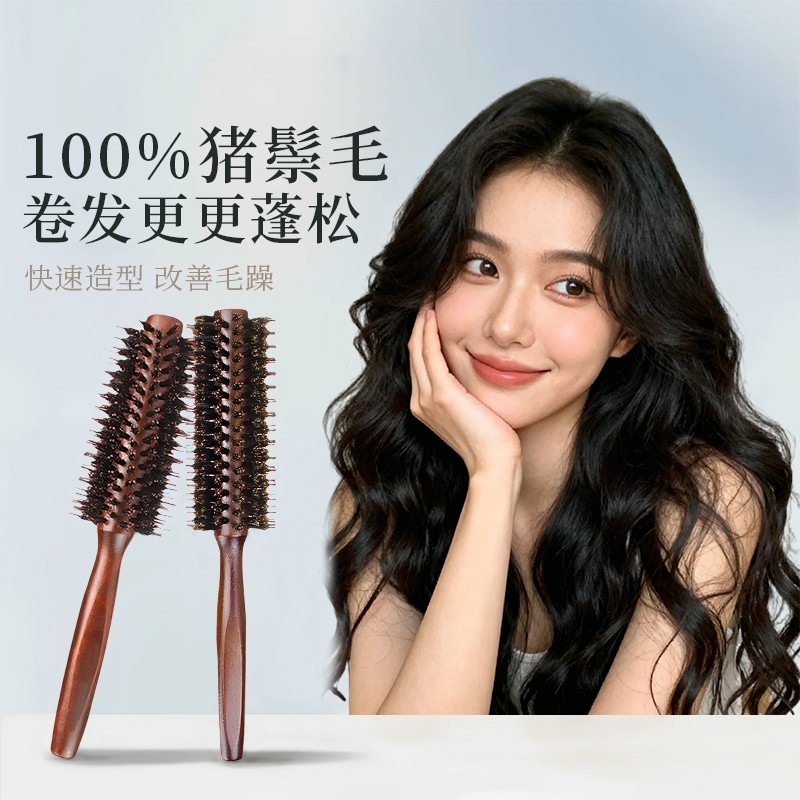发廊专业猪鬃毛卷长发梳子女士家用滚梳直发内扣梨花圆筒受热木男