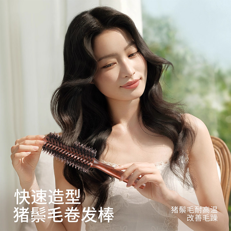 卷发梳子猪鬃毛圆筒滚梳内扣长直发吹头发造型卷梳家用发廊专业女
