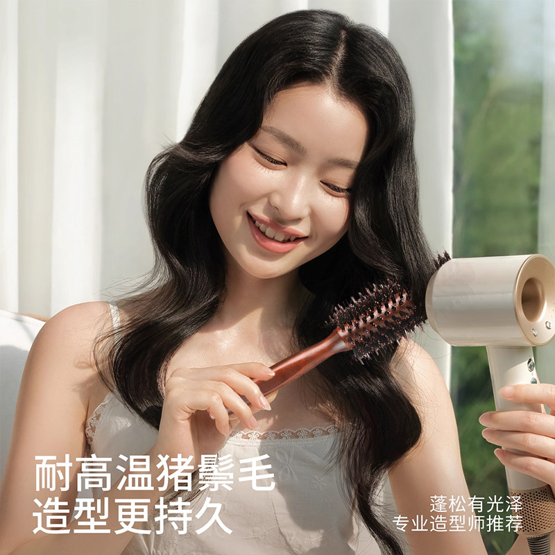 古迪猪鬃毛卷发梳女士造型专用蓬松颅顶家用吹发防静电圆滚筒梳子