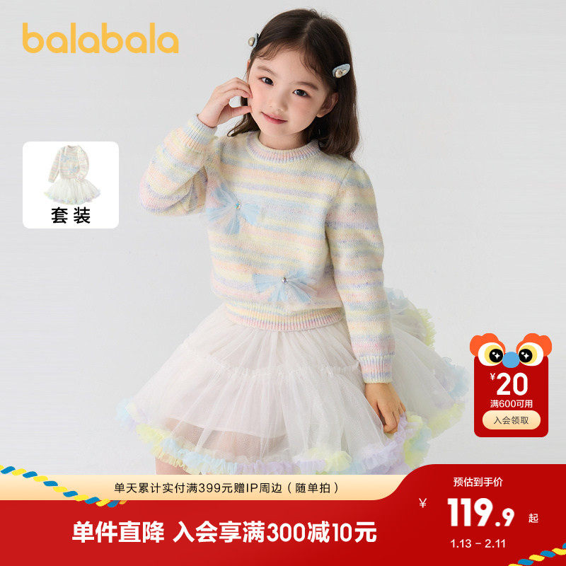巴拉巴拉女童短裙套装秋冬装两件套网纱蓬蓬裙甜美洋气蝴蝶结时尚
