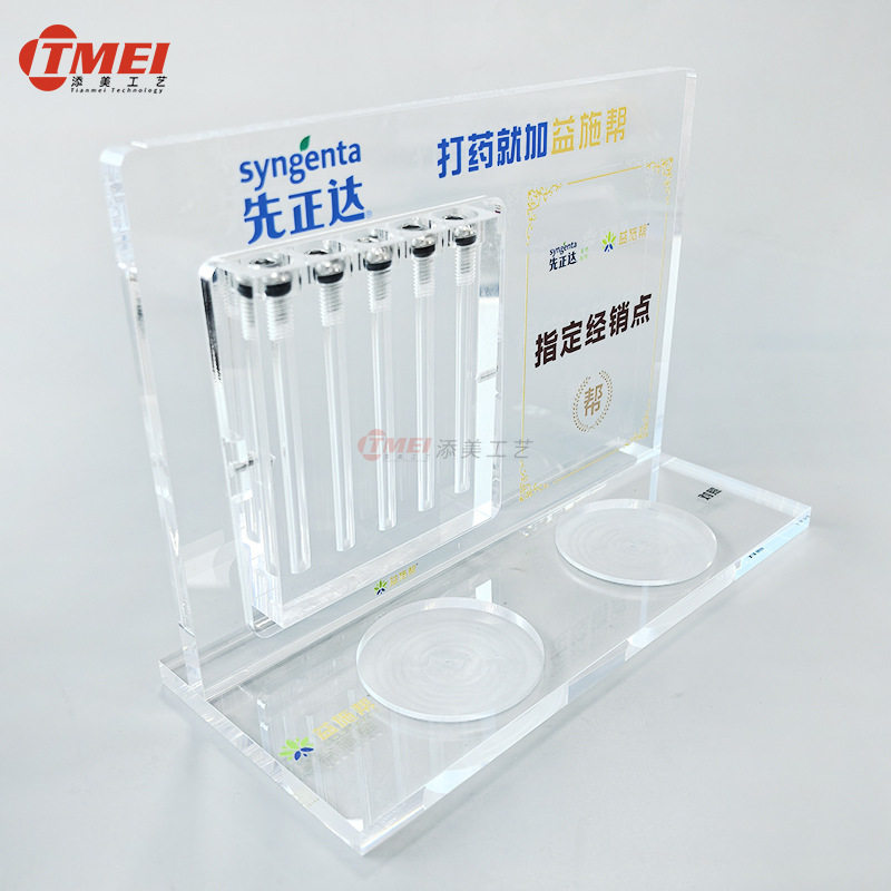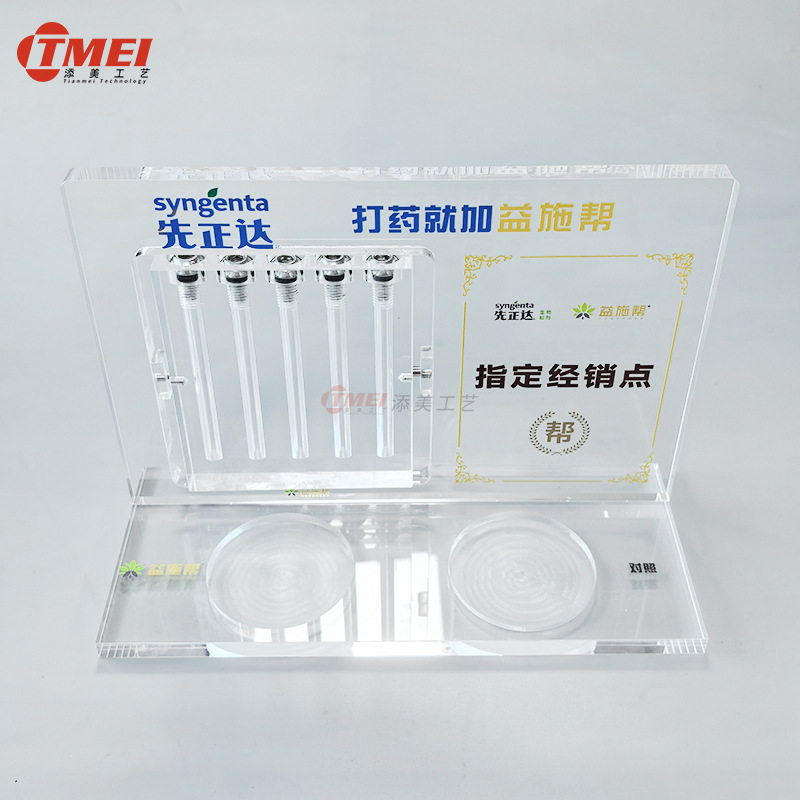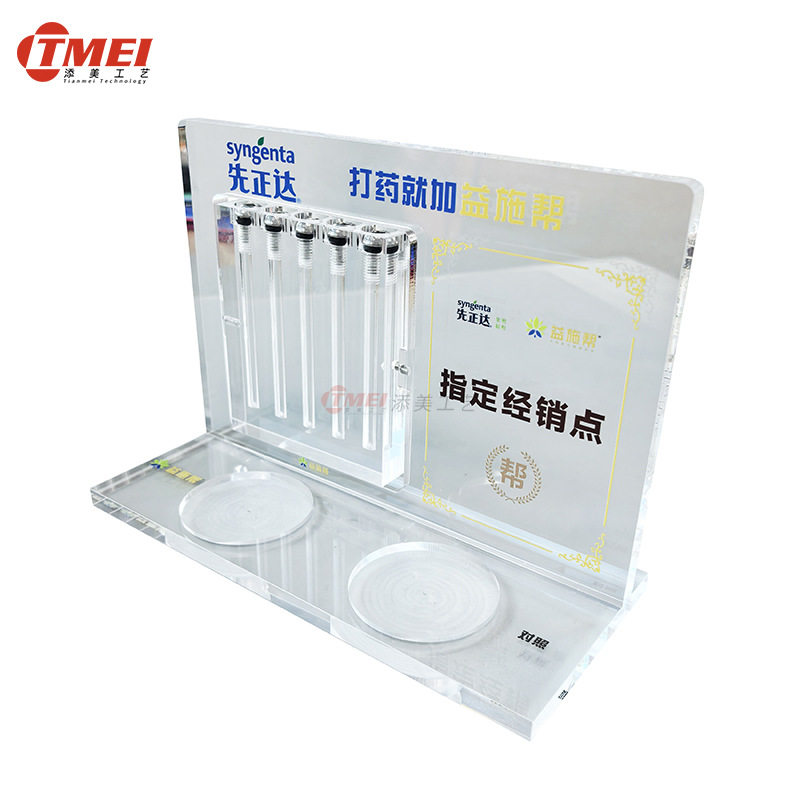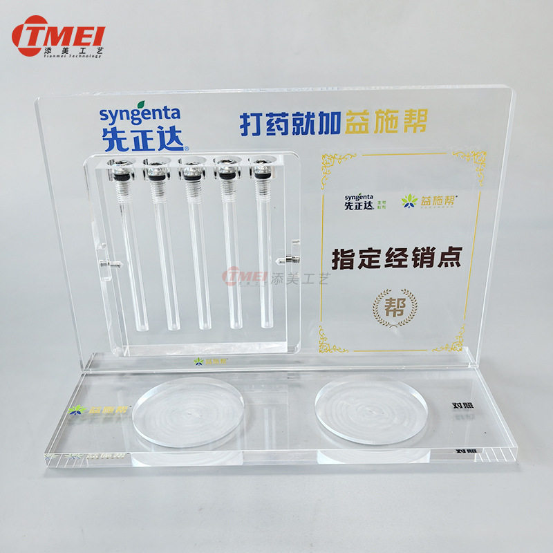 农业化工产品展示架 透明亚克力除草剂对比展板液体密封罐装演示