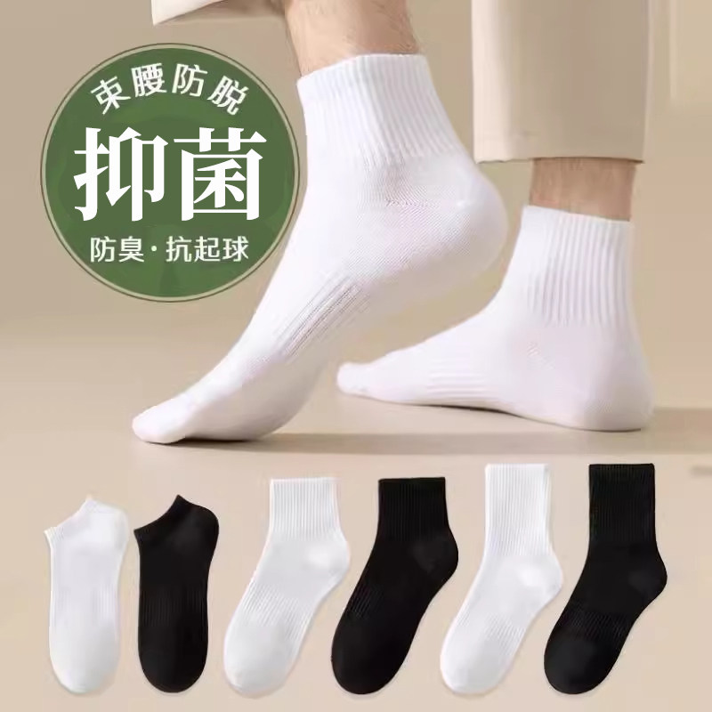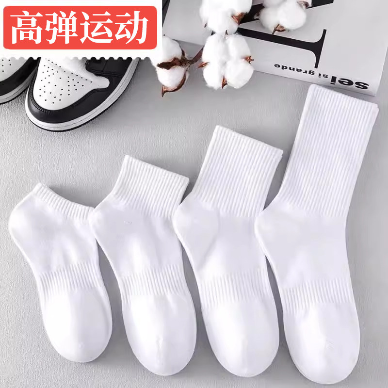 秋冬季防臭男士袜子男款白色中筒运动短袜纯色男女款吸汗防滑长筒