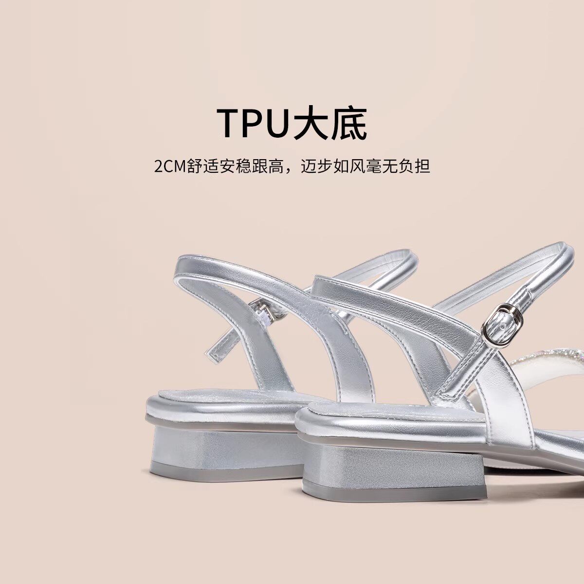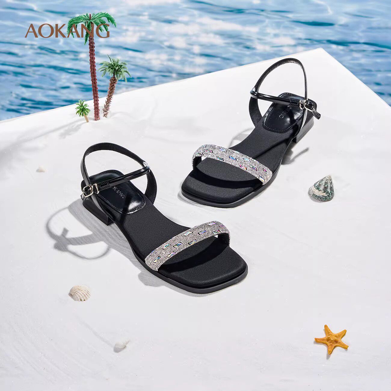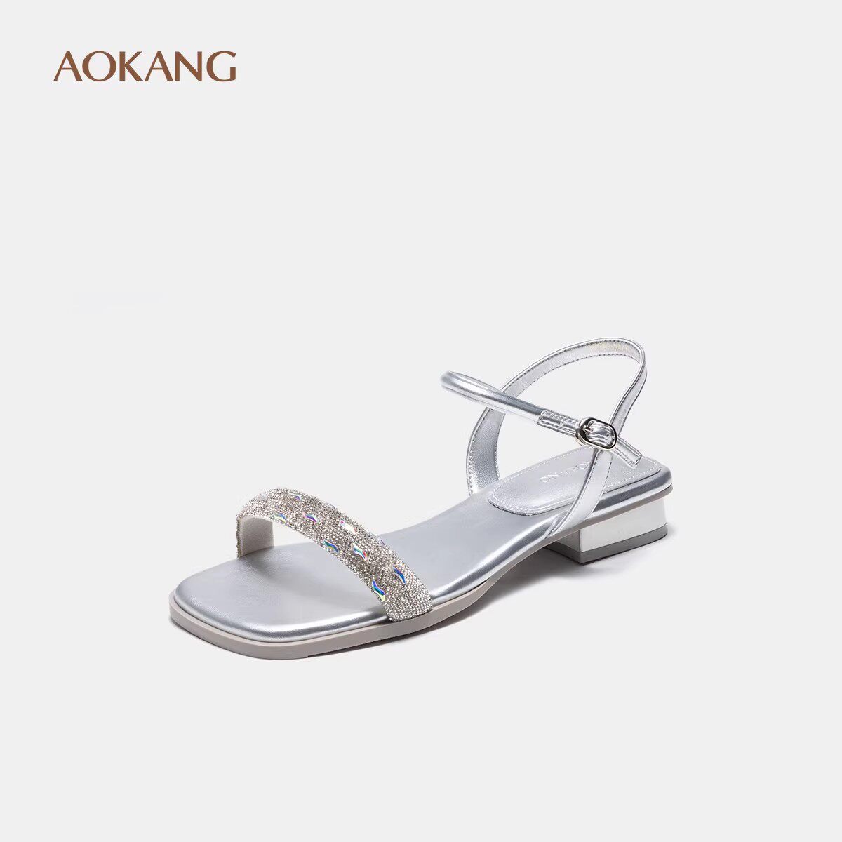 【海屿星纱】奥康夏季时装凉鞋一字带摩登粗跟约会配裙百搭仙女鞋