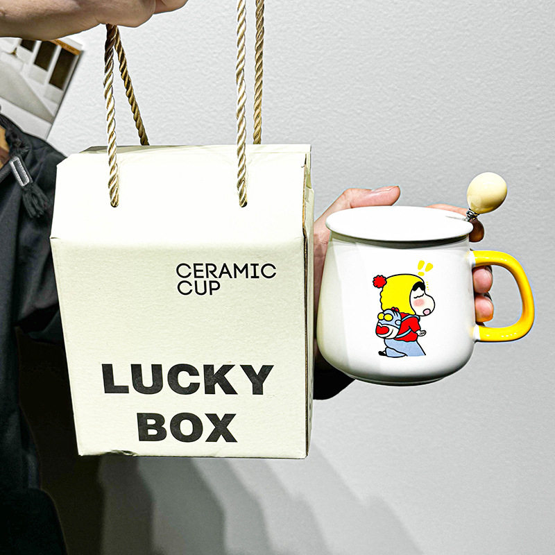 趣皿可爱马克杯卡通带盖带勺陶瓷杯情侣水杯咖啡杯子送女生伴手礼
