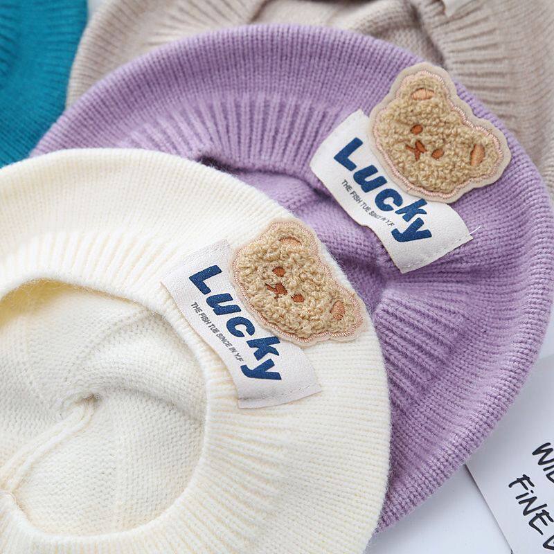 hugz儿童帽子男孩女孩保暖针织毛线帽秋冬季户外护耳防风熊仔帽子