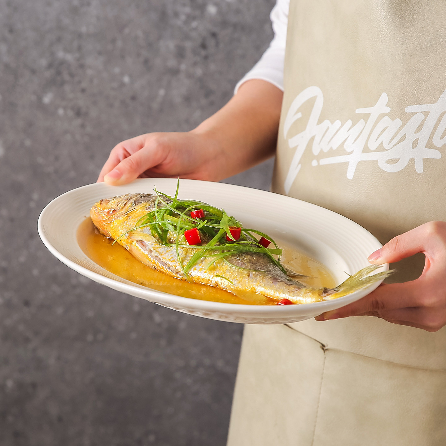 川岛屋陶瓷鱼盘家用2026新款蒸鱼专用盘子高级感餐具椭圆形装鱼碟