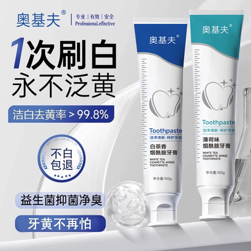 小苏打美白牙膏益生菌酵素去黄口臭成人速效洗白锁白防蛀清新口气