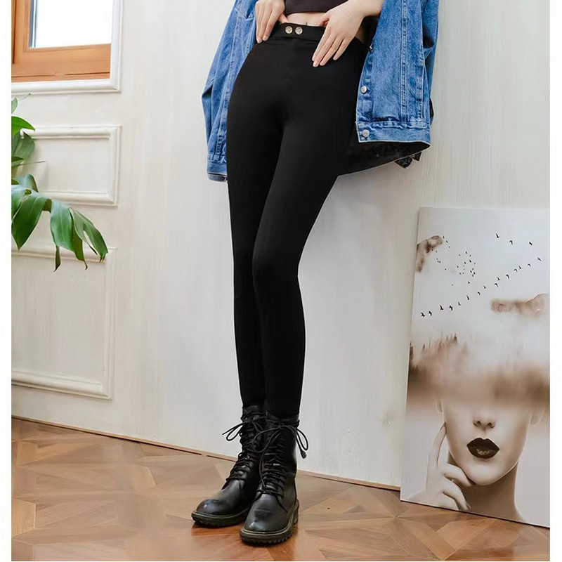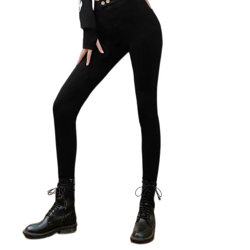 加绒紧身裤 休闲时尚双扣弹力小脚裤