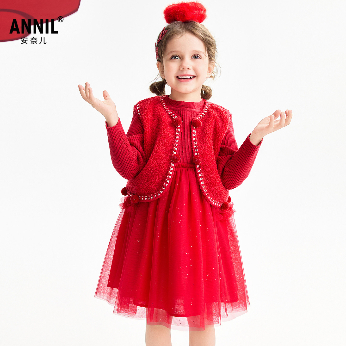 巴拉巴拉女童连衣裙宝宝拜年裙子冬装新款童装儿童红色洋气公主裙