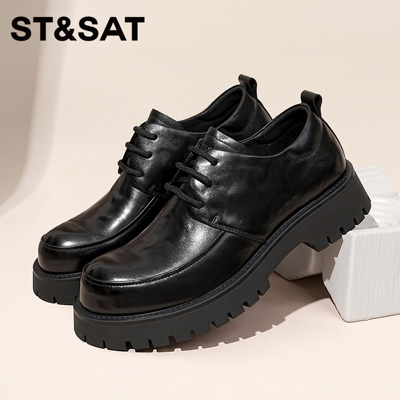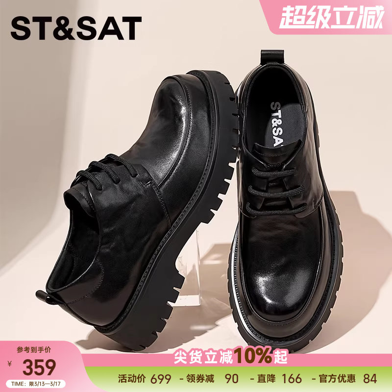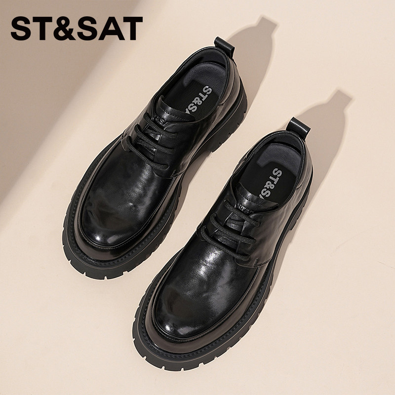 星期六年春季男士厚底德比鞋商务正装皮鞋英伦风系带休闲皮鞋