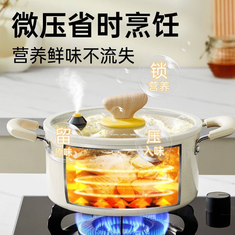 炊大皇汤锅微压锅蒸锅家用新款不粘锅麦饭石色煮粥煲汤两用炖锅