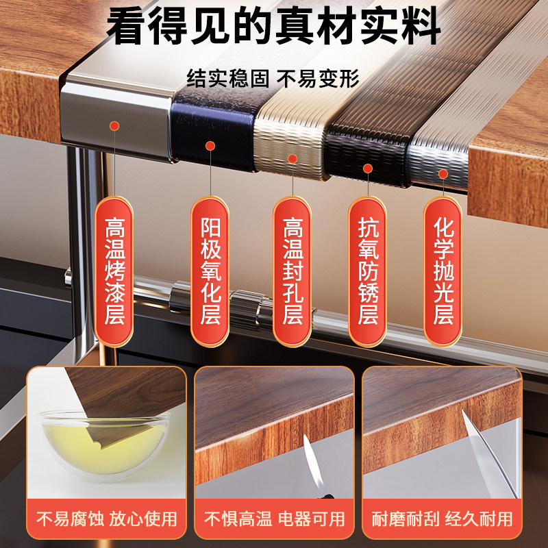 微波炉置物架厨房台面多功能电饭煲烤箱一体分层收纳伸缩架子三层