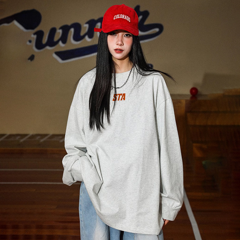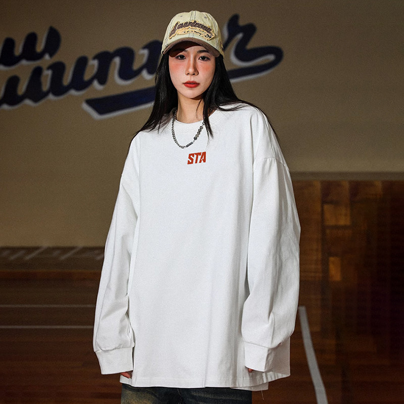 STA国潮赛车小logo春秋上衣潮牌卫衣情侣打底衫宽松纯棉长袖t恤男