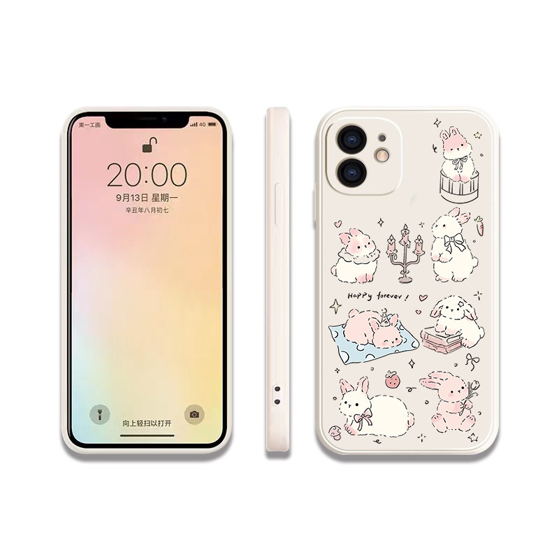 可爱卡通简笔画兔兔全包液态硅胶手机壳适用苹果17nova14华为p70/mate70小米15opporeno14vivo30荣耀iPhone15