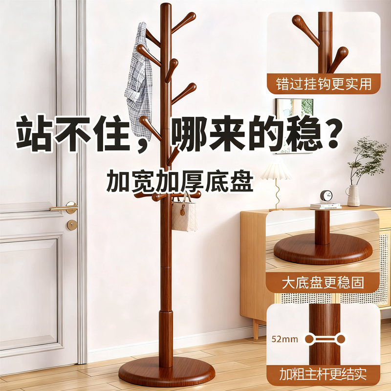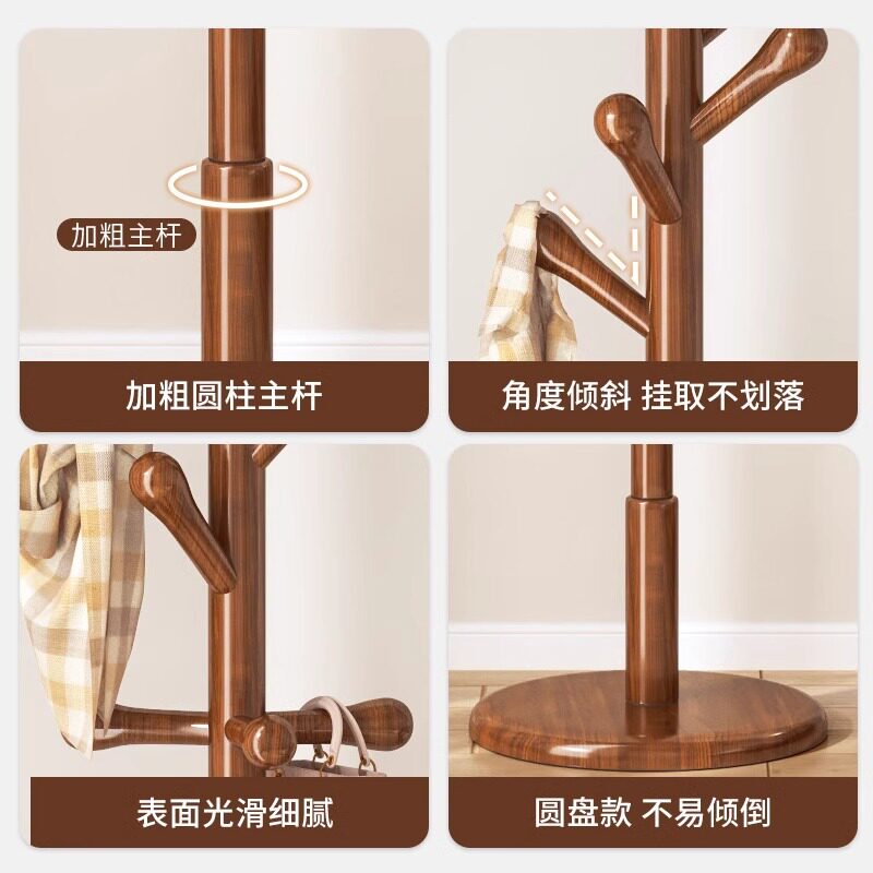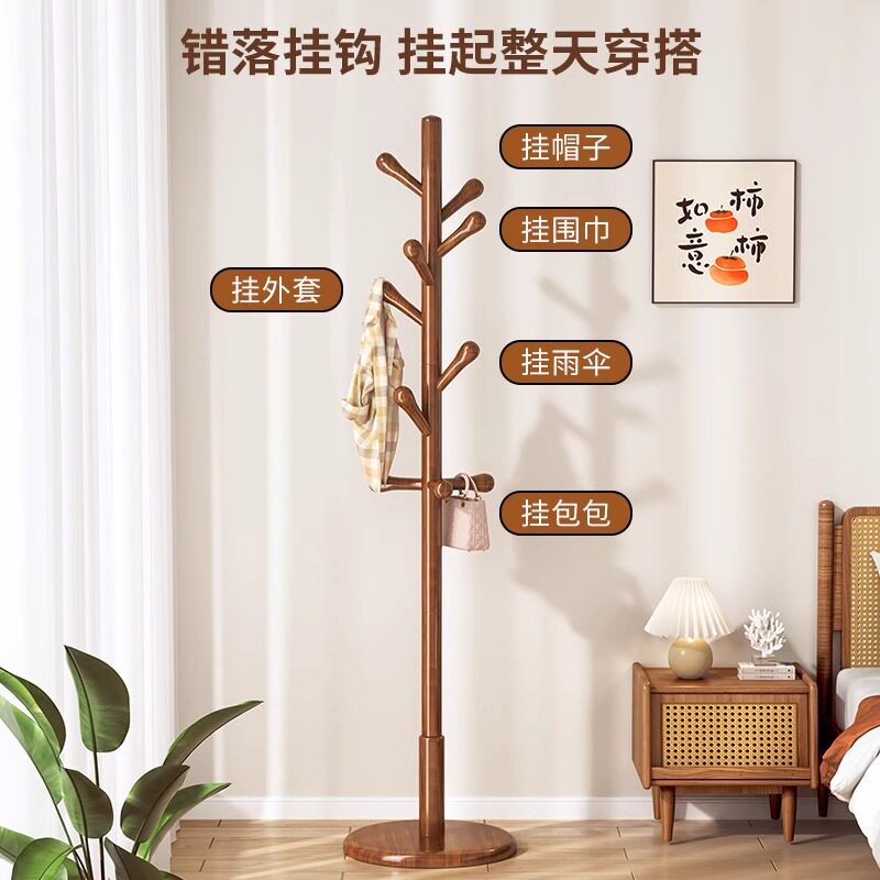 实木衣架落地卧室客厅衣帽架房间立式挂衣架新款家用衣服置物架子