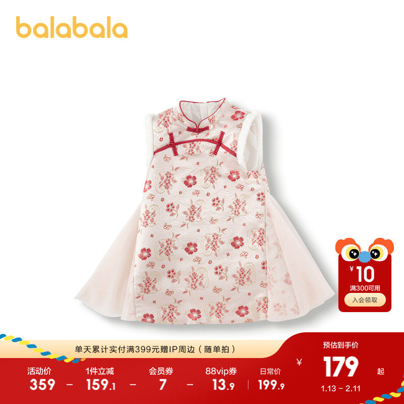 巴拉巴拉女童连衣裙宝宝拜年裙子冬装新款童装儿童红色洋气公主裙