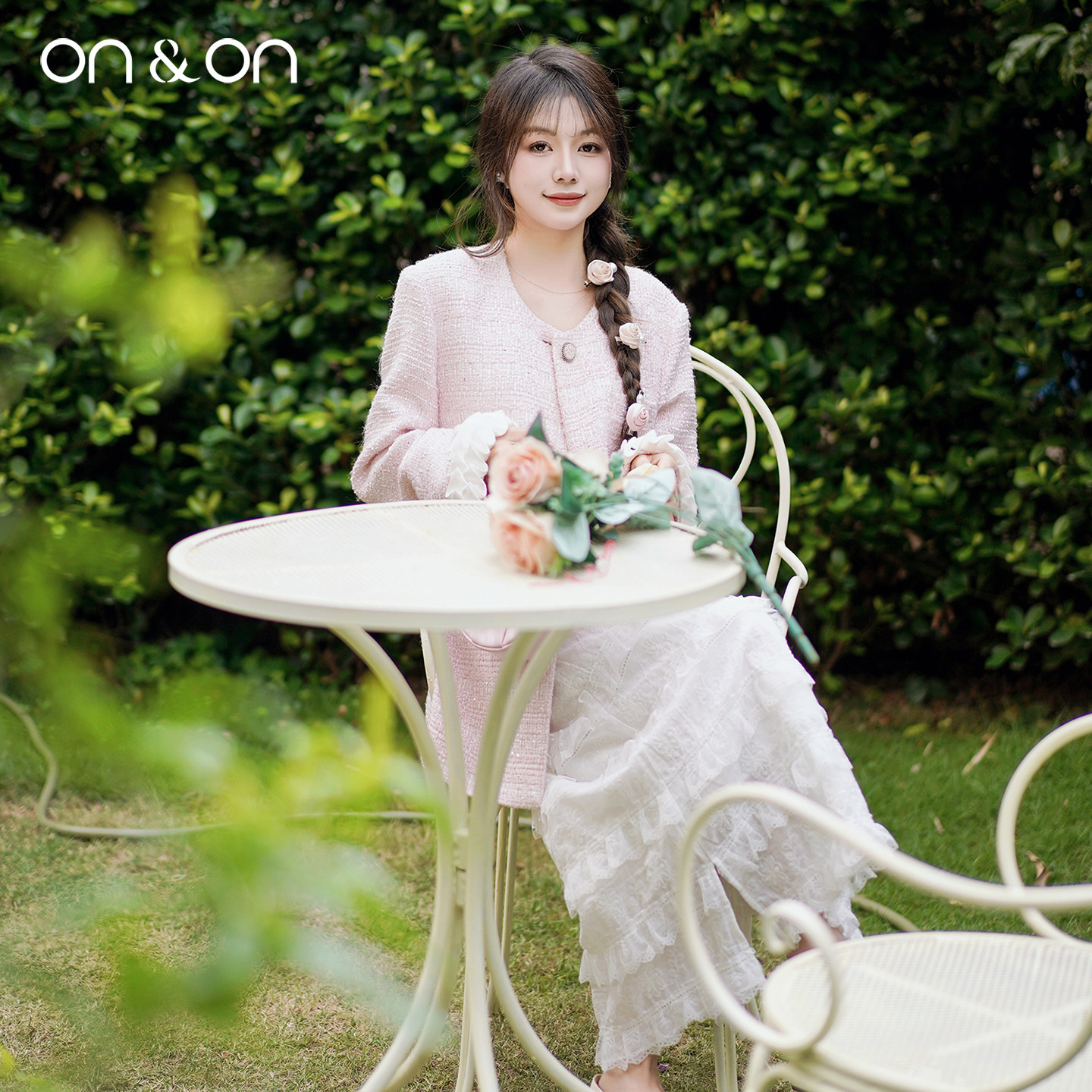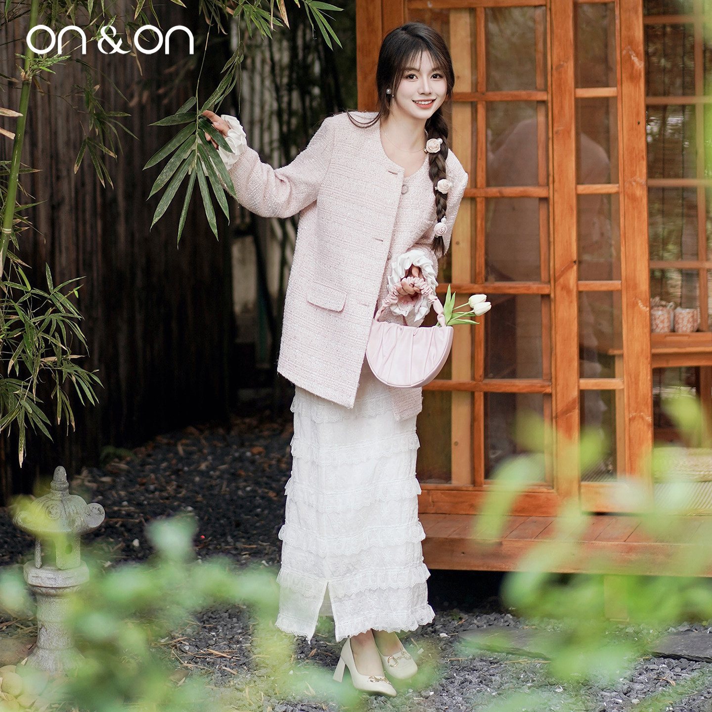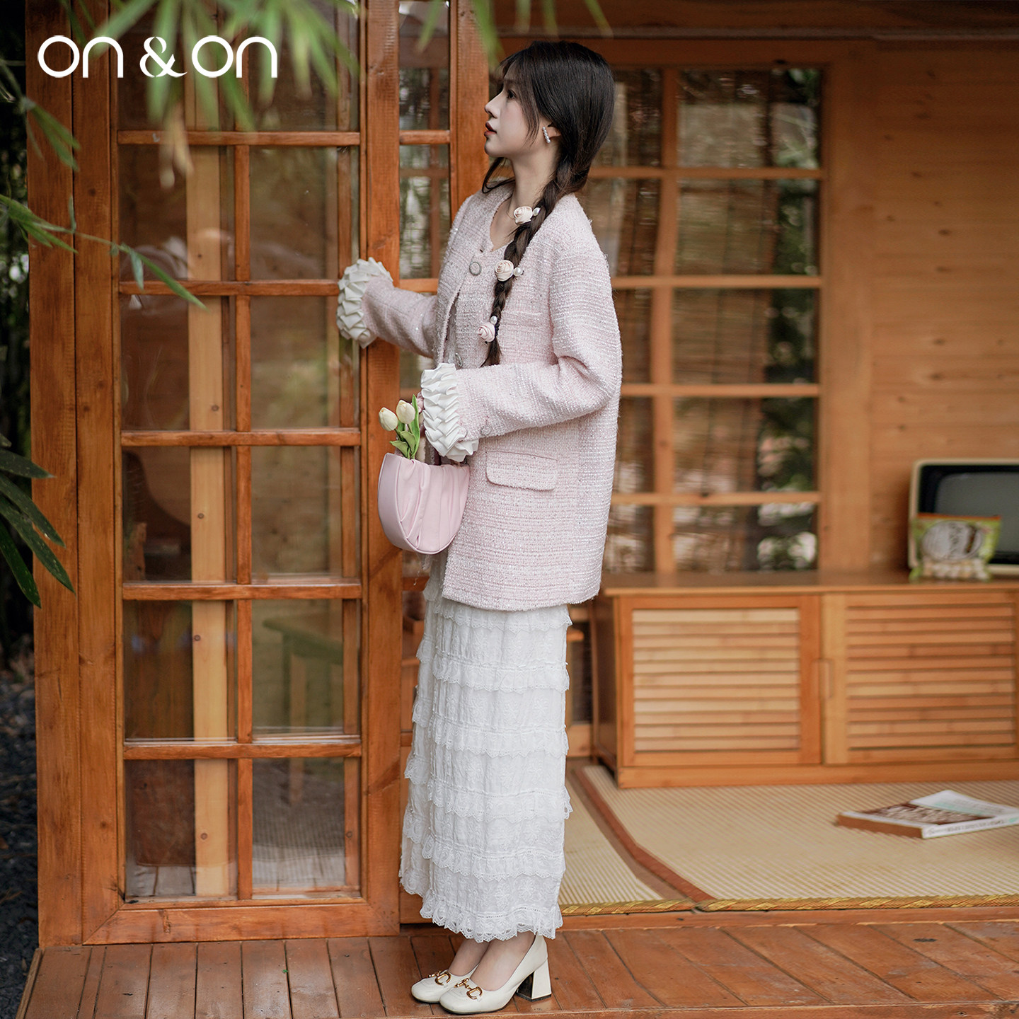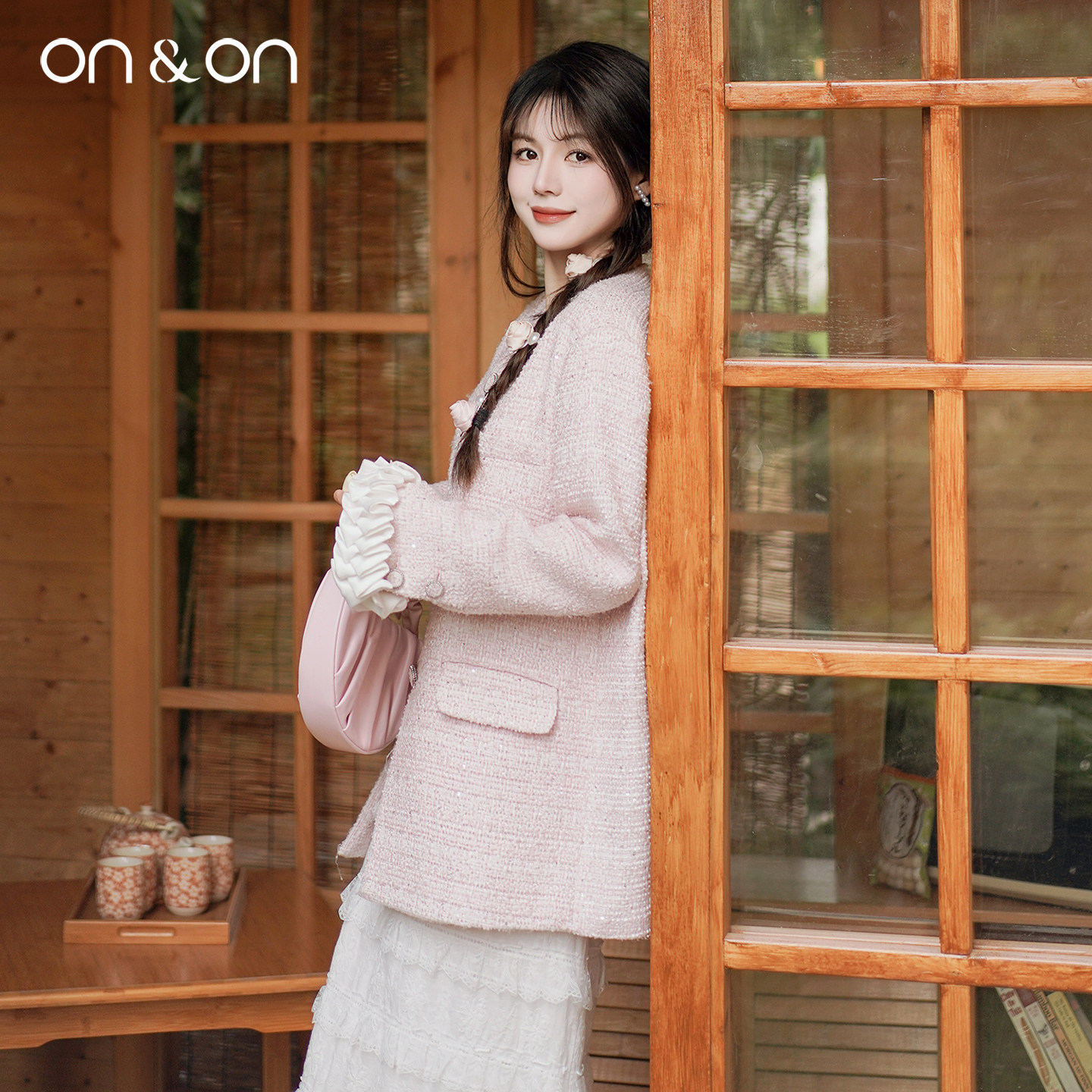 ON&ON/安乃安韩系温柔花瓣袖粉色甜美气质减龄中长款小香风外套