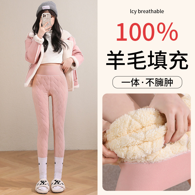 德绒秋裤女保暖裤冬季加厚内穿发热羊毛蚕丝护膝高腰显瘦打底裤