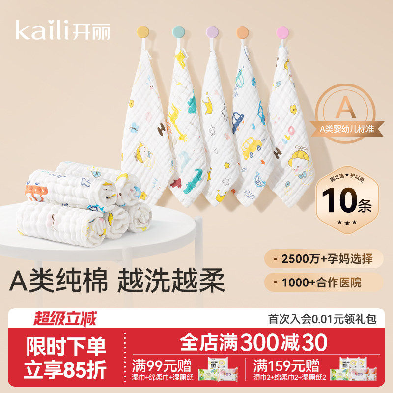 开丽婴儿小方巾儿童毛巾纯棉纱布口水巾宝宝洗脸巾新生超软