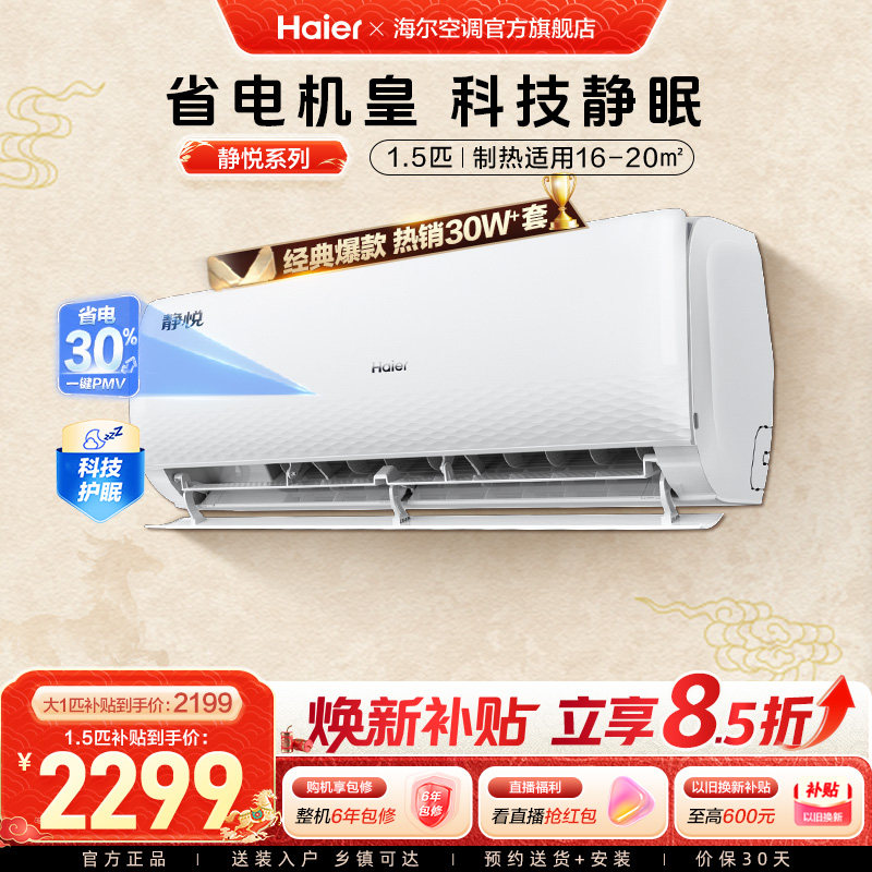 【国补8折】海尔空调1.5匹家用一级能效变频卧室挂机冷暖E1旗舰店