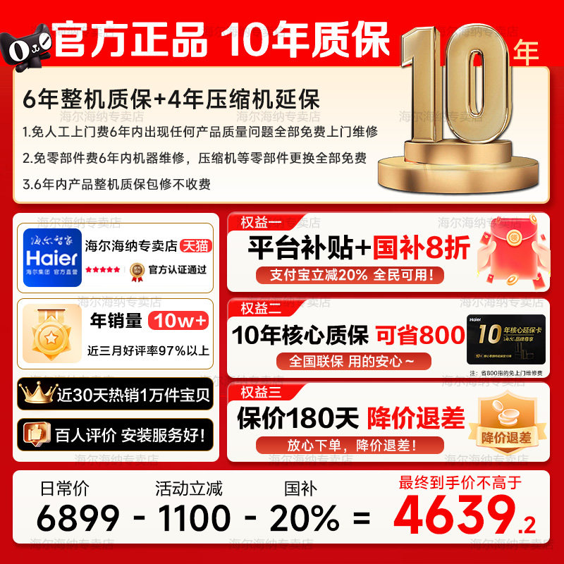 [政府补贴]海尔空调家用客厅大3匹/2匹净省电冷暖立式柜机E1旗舰