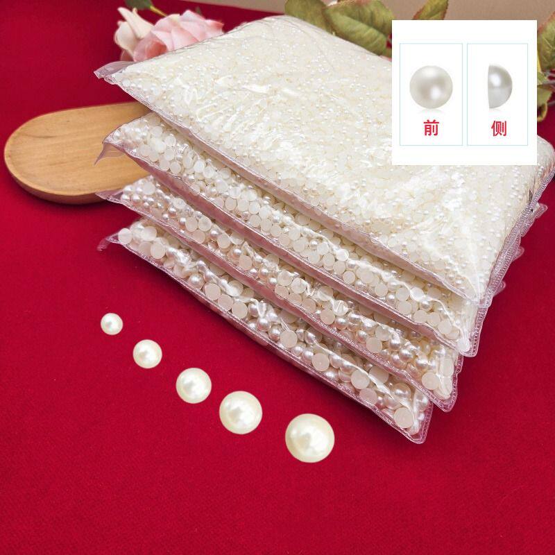 壳贴钻半面珍珠diy发饰品手工平底圆形半圆珠子串珠配件片【米白