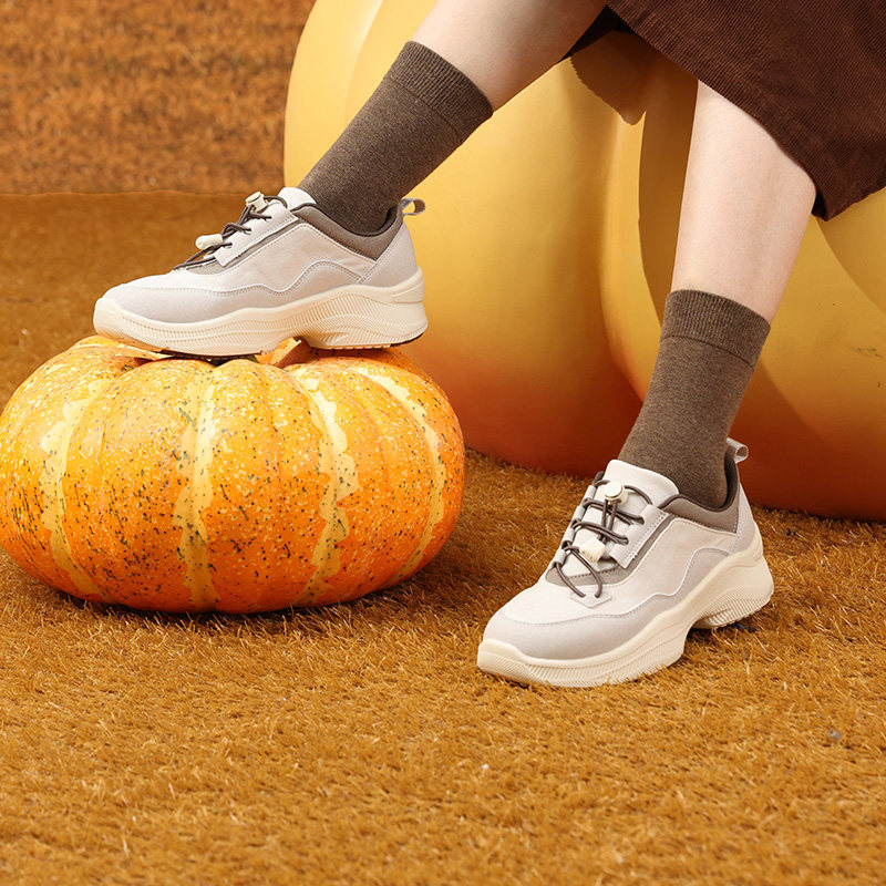 Chio2nd南风 4cm增高磨砂牛皮德训鞋子女款秋冬复古休闲鞋运动鞋