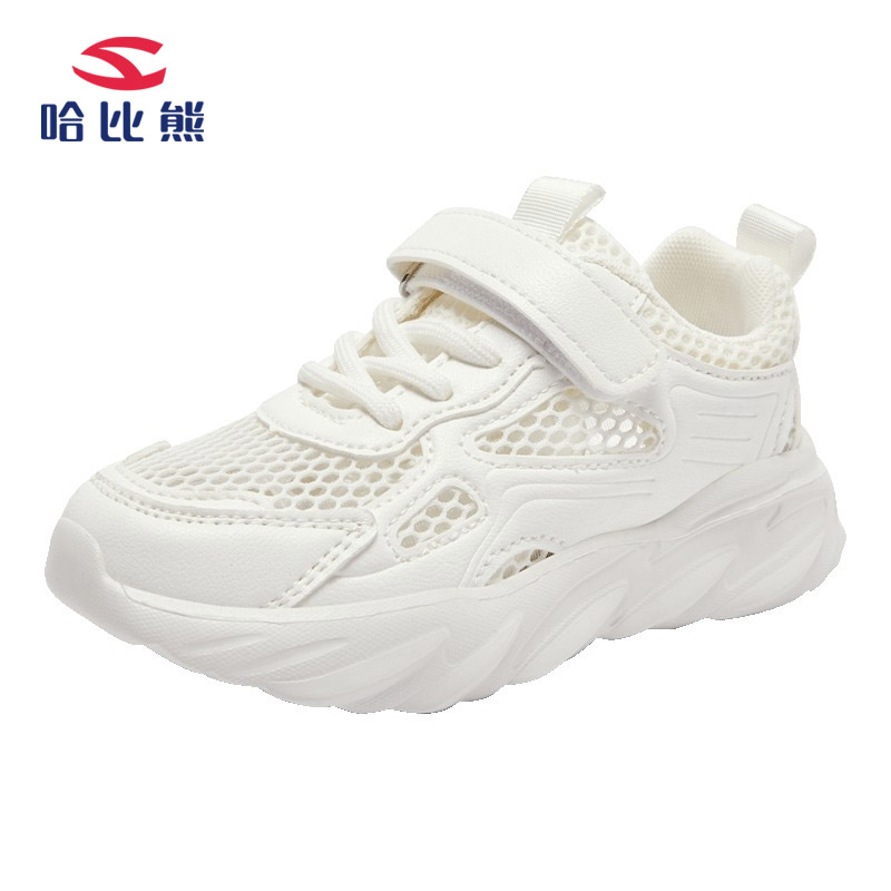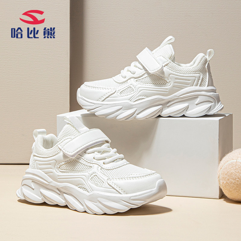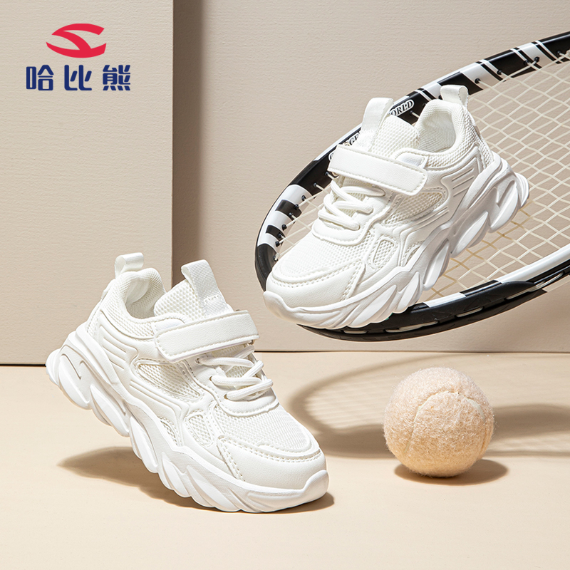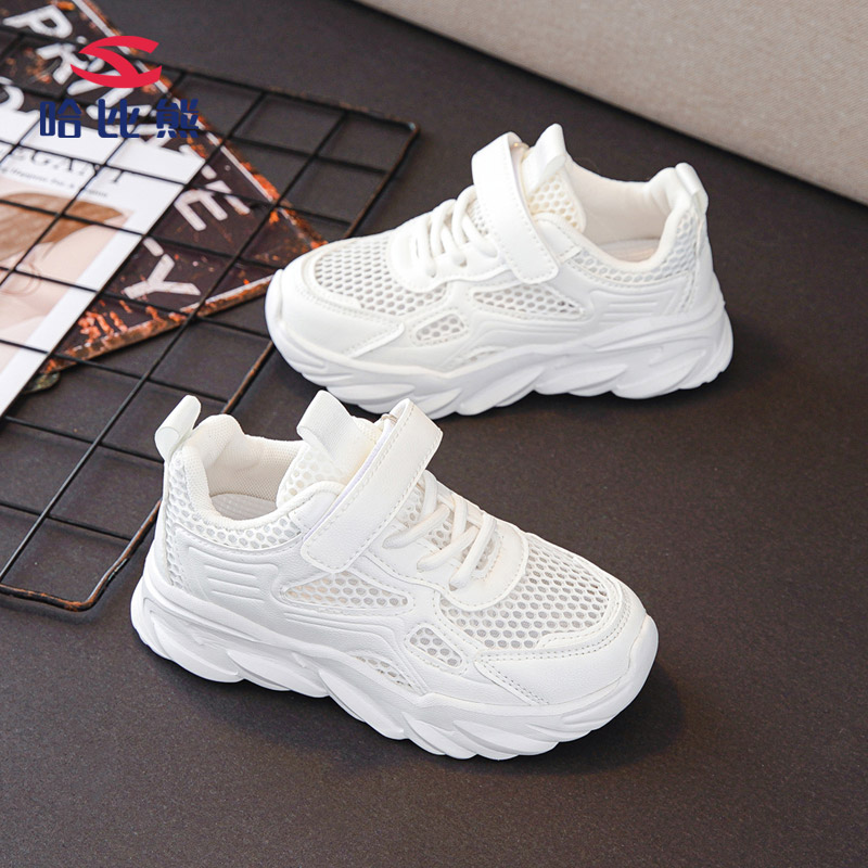 哈比熊儿童小白鞋男童女童运动鞋2025春季网鞋透气网面中大童演出