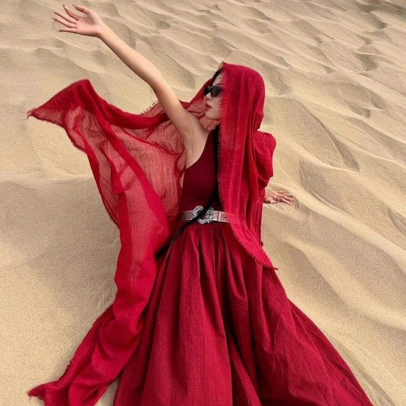新款民族风披肩女外搭云南新疆西北旅游草原沙漠防晒头巾丝巾围巾