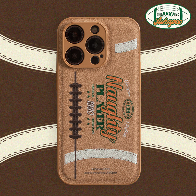 suhapoo壳内策展 橄榄球皮质手机壳 新款iphone17pro苹果16原创15小众max13复古ins15pro14plus美式保护套