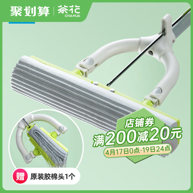 茶花海绵拖把家用一拖净吸水全能免手洗拖布卫生间挤水胶棉替换头