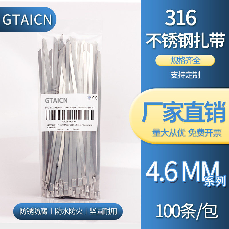 316不锈钢扎带4.6MM金属扎丝室内户外厂家直供耐高温防腐蚀抗氧化