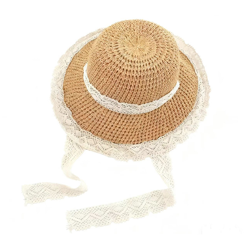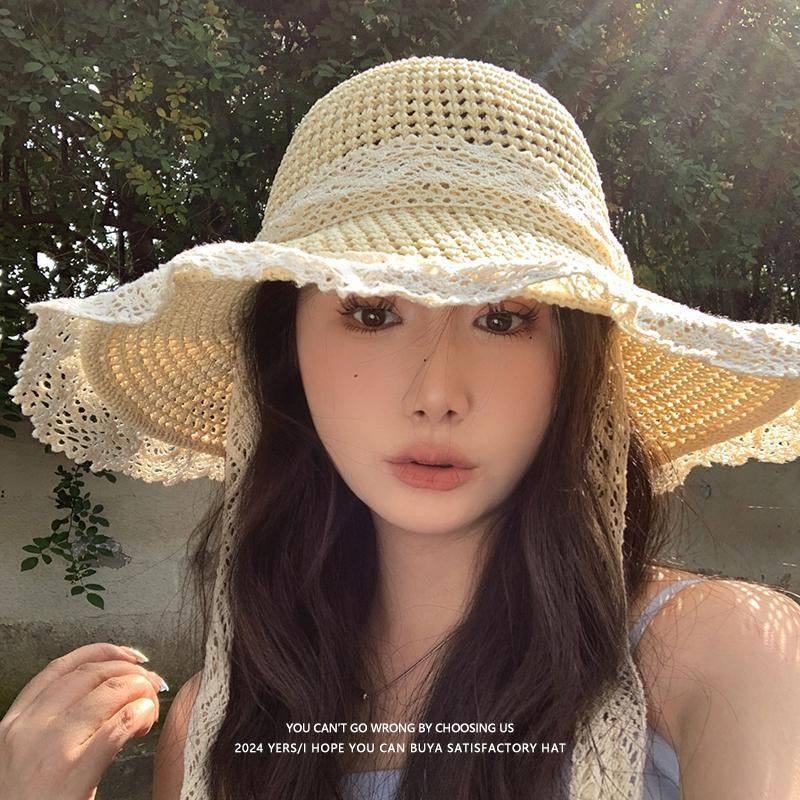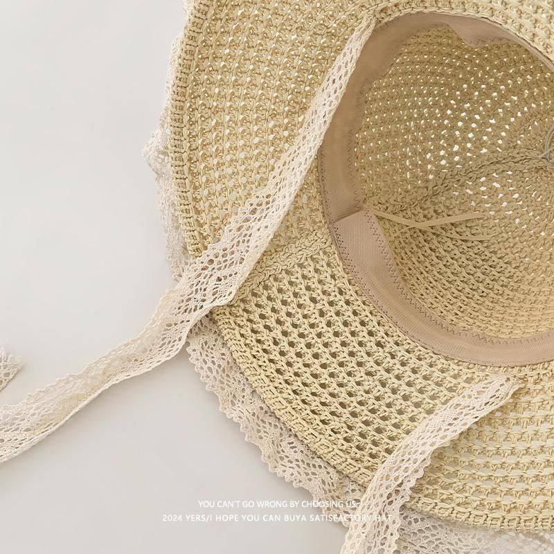 森系蕾丝飘带草编帽女出游防晒沙滩海边太阳帽帽子遮阳帽多规格
