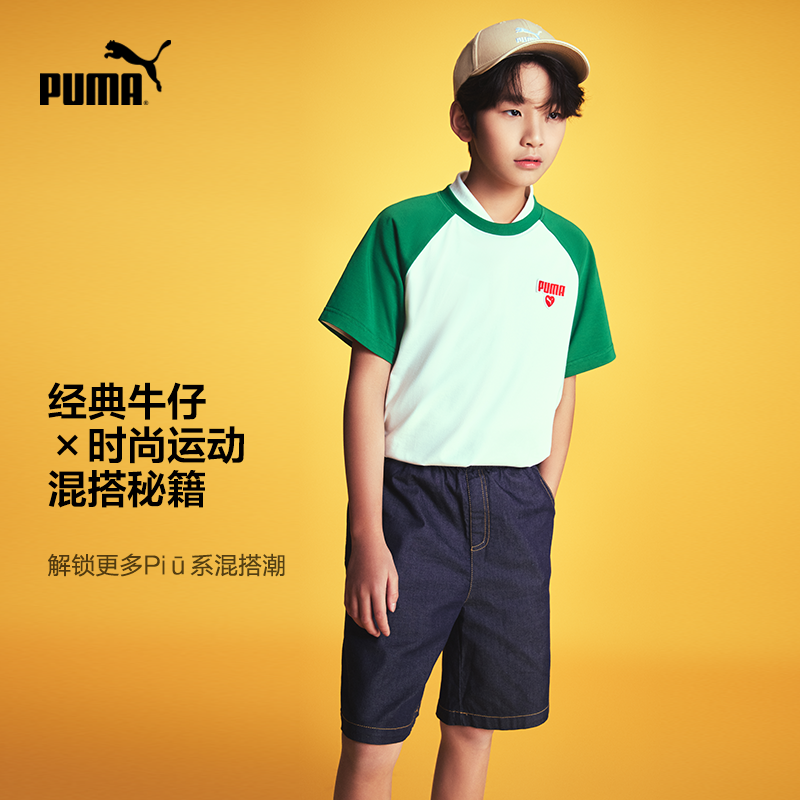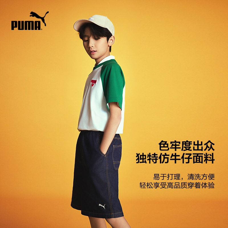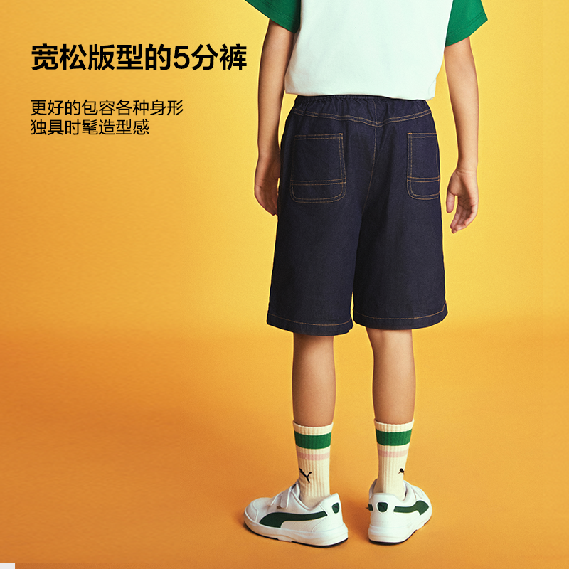 PUMA彪马官方童装裤子新款儿童夏季梭织短裤牛仔裤时尚潮酷五分裤