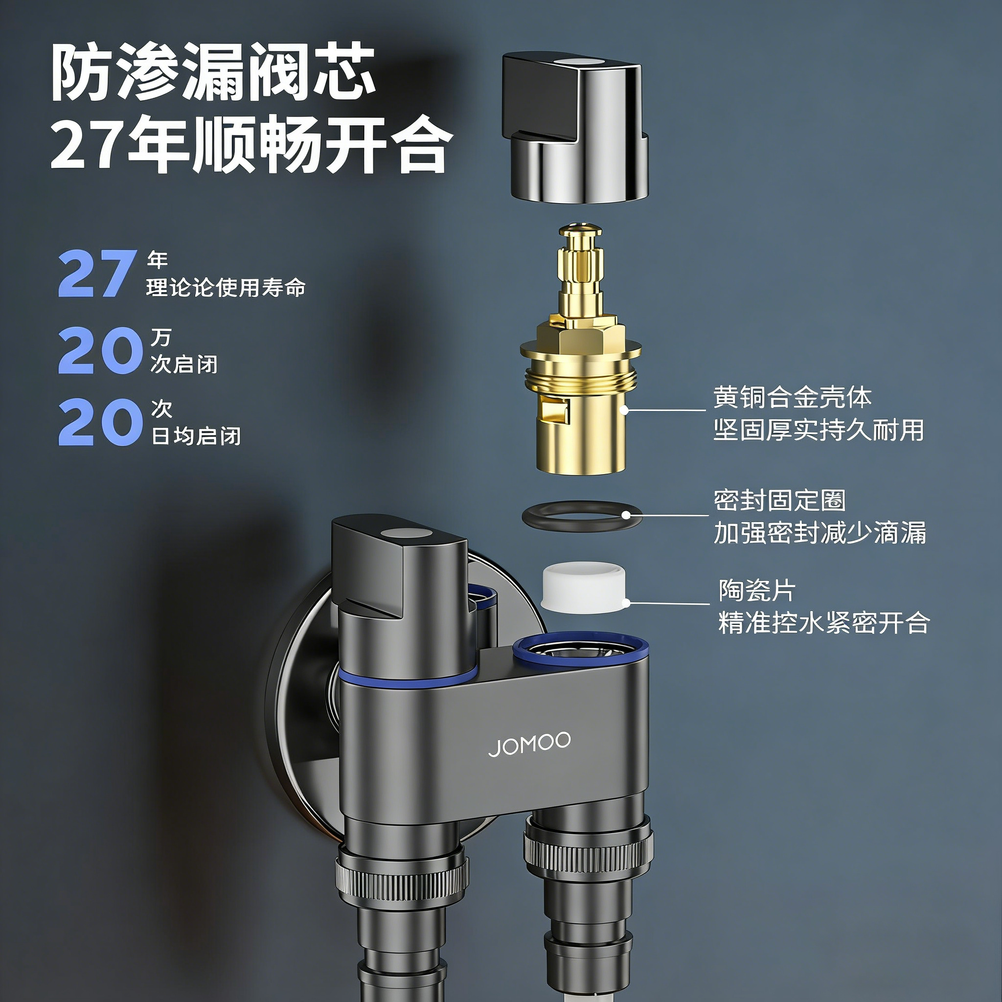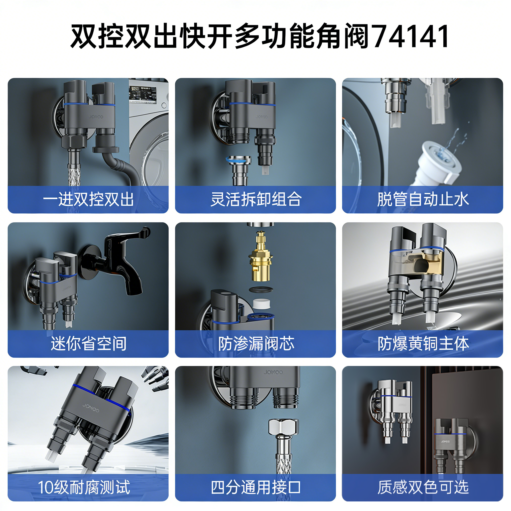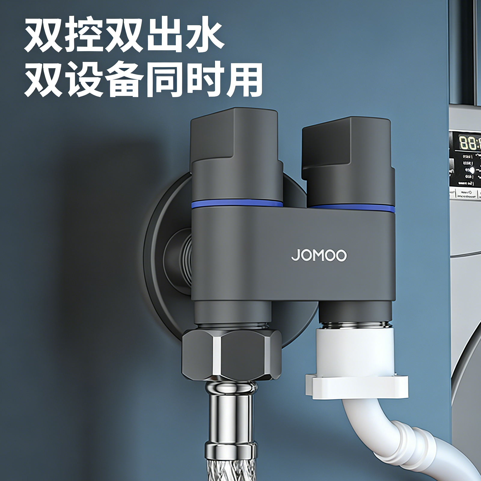 九牧洗衣机水龙头三角阀黄铜一进二出双控开关全品牌通用自动止水