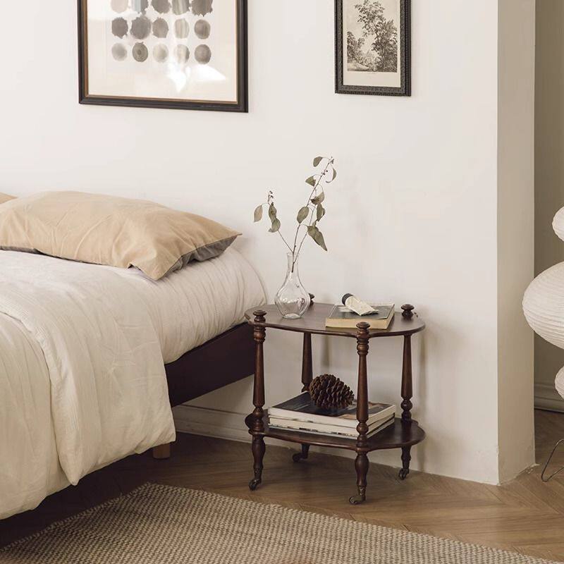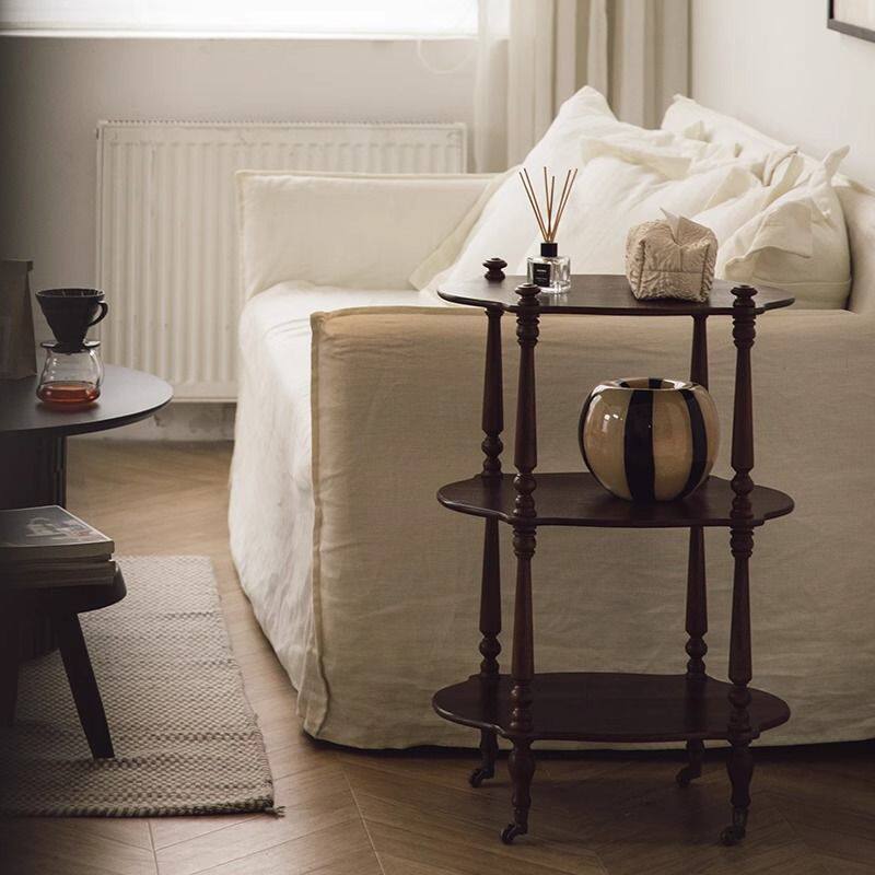 b实木小推车法式复古茶几置物架收纳滚轮可移动边几角几中古