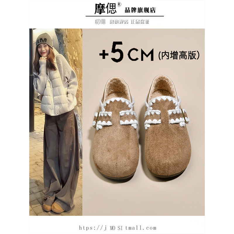 厚底加绒全包勃肯鞋女两穿毛毛二棉鞋女2025新款冬季雪地靴豆豆鞋