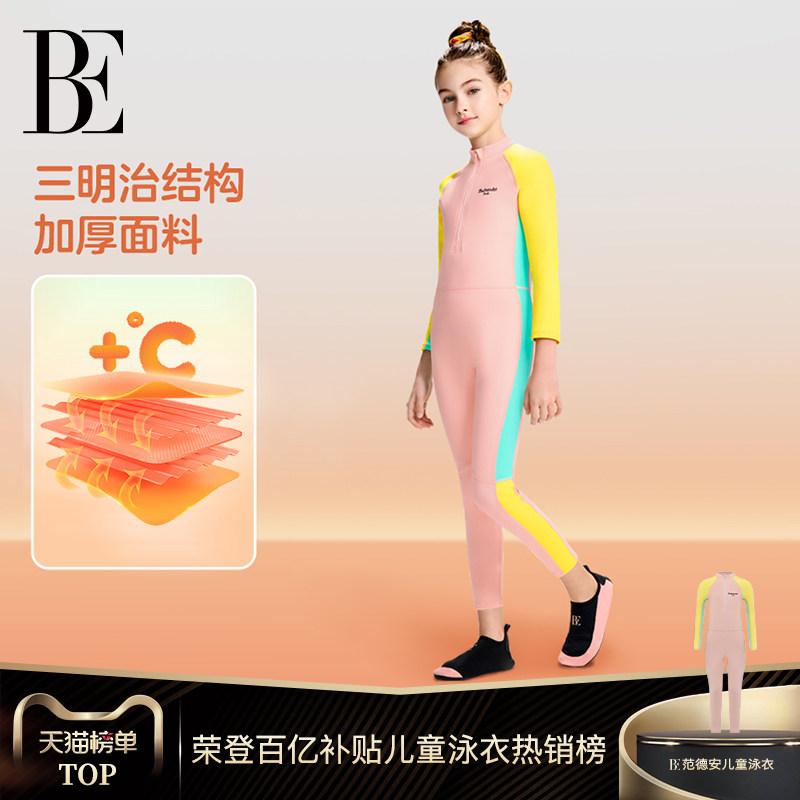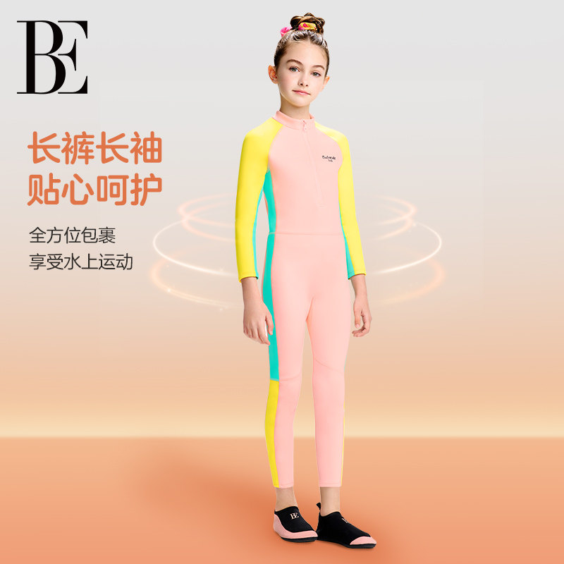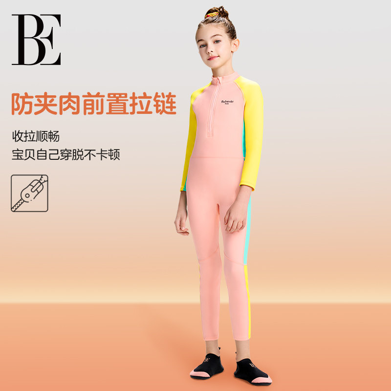 BE范德安2025 儿童连体女童泳衣长袖长裤保暖游泳潜水冲浪装备