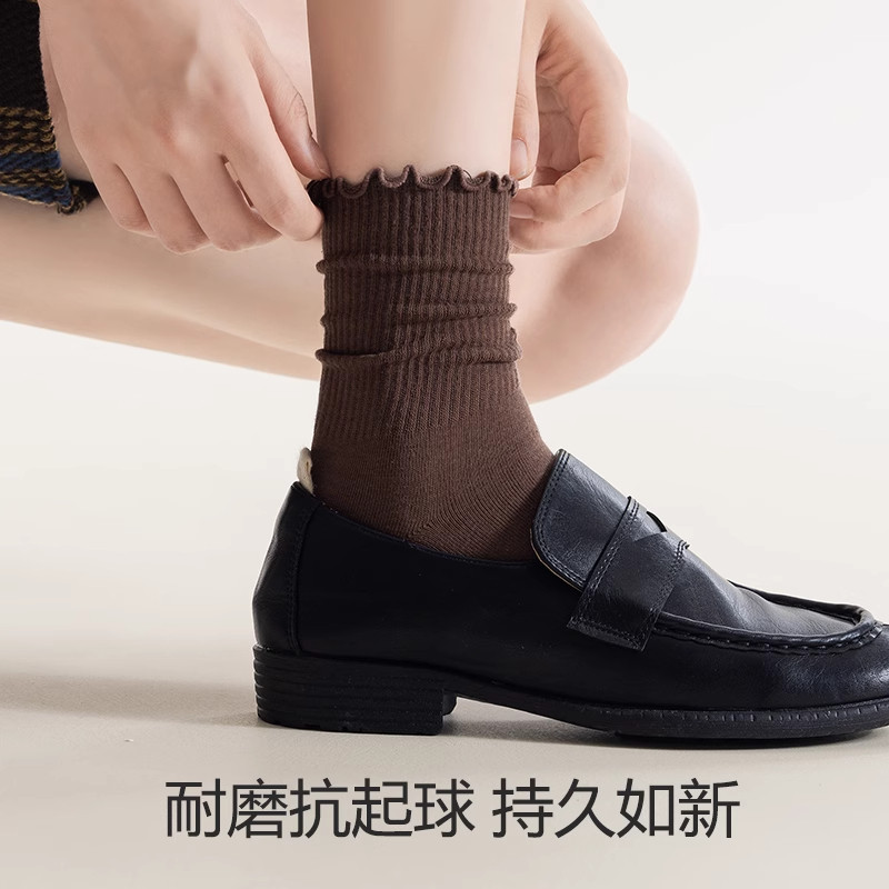 木耳花边袜子女士春秋纯棉中筒袜配玛丽珍鞋堆堆袜无骨长袜jk日系