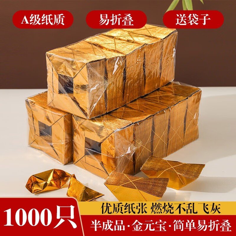 金元宝半成品银元宝手工折纸金纸锡箔纸加厚切角元宝烧纸钱金条金砖整箱批发包邮纸张折叠