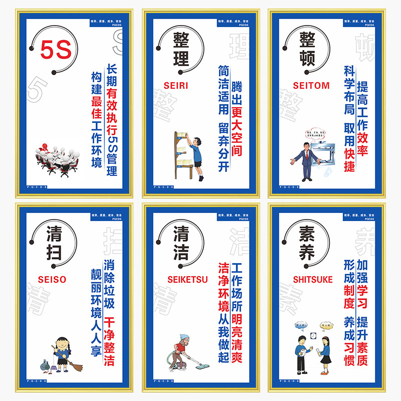 5s6S企业文化管理标语/7S/8S/10S15s企业文化宣传海报车间仓库展板挂图整理整顿安全素养清扫清洁广告牌上墙