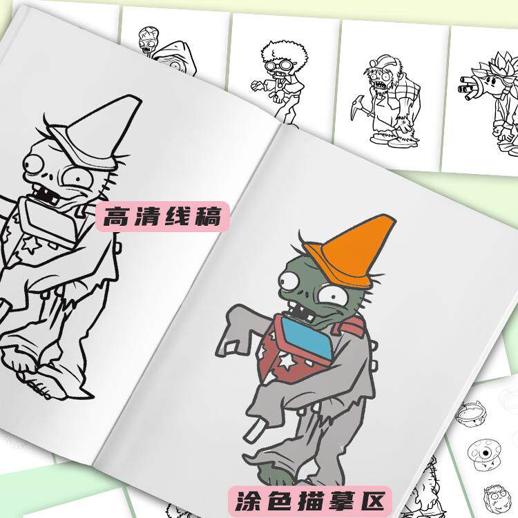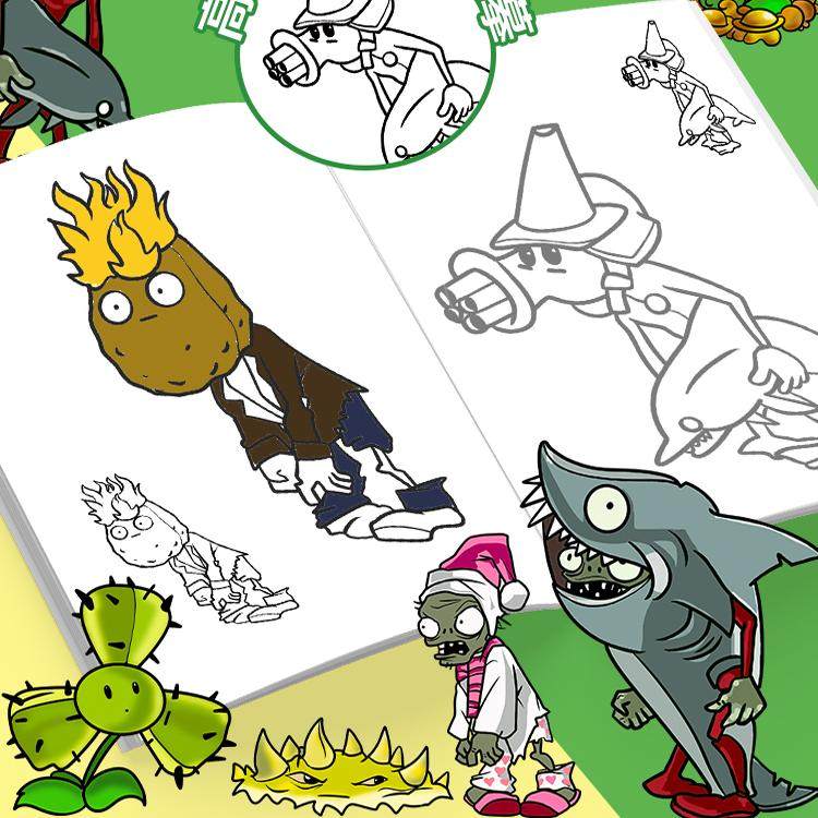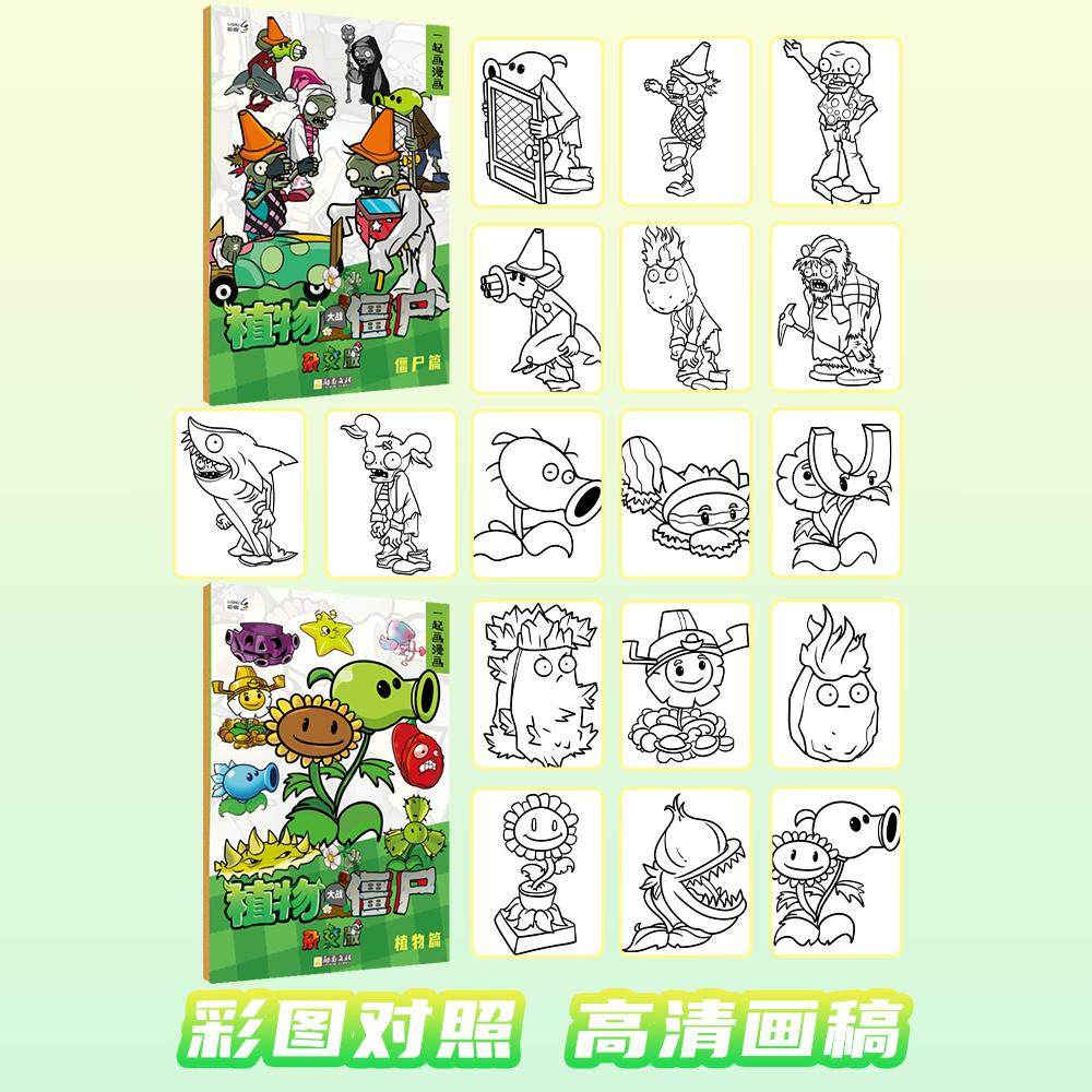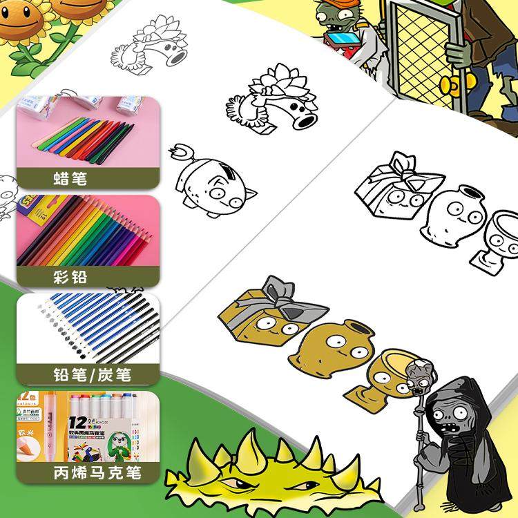 植物大战僵尸画画本动漫线稿临摹绘画本儿童手绘本描摹本卡通涂色描画基础儿童分步学画画教程素描画册图画本