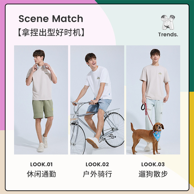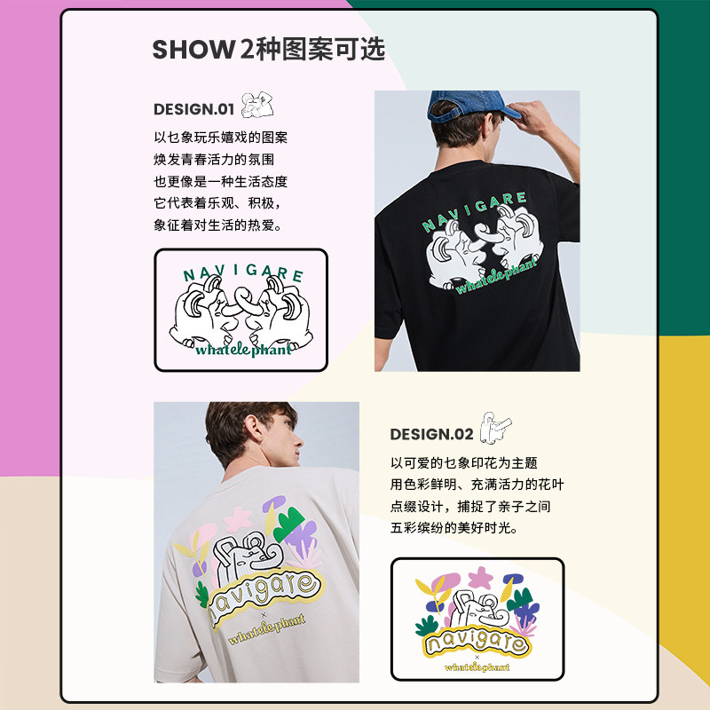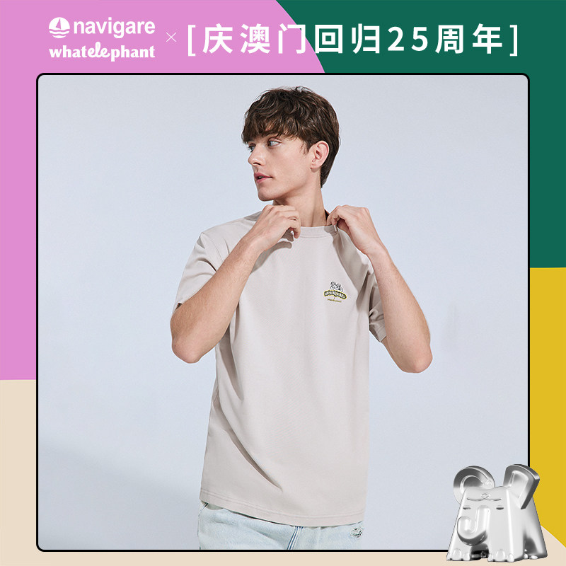 [乜象宠物联名款]Navigare小帆船夏季黑色情侣短袖圆领T恤男