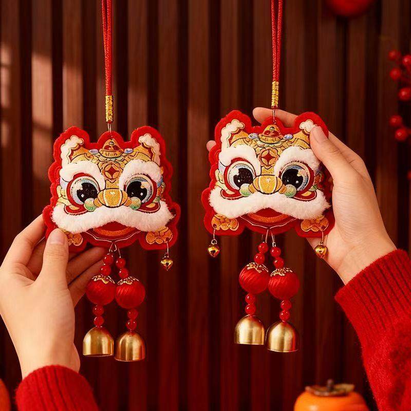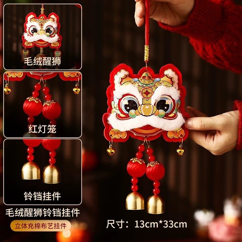 醒狮挂件福字风铃装饰2026新款春节过年客厅玄关布置毛绒福字挂饰