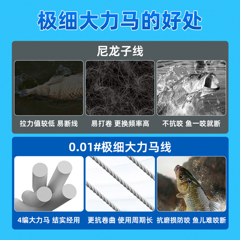 力丸极细大力马金袖海夕短子线双钩0.03pe线绑好溪流袖鲫鱼钩成品